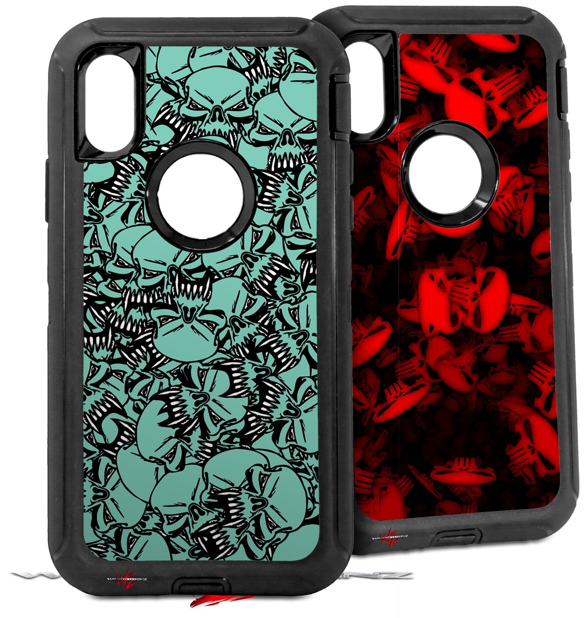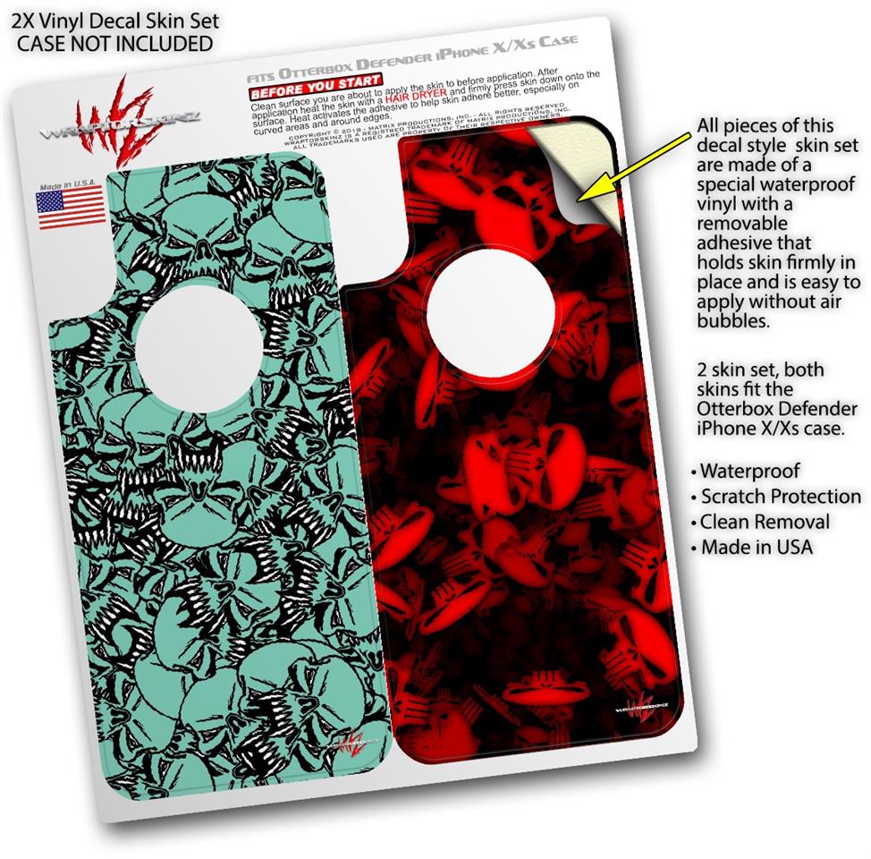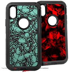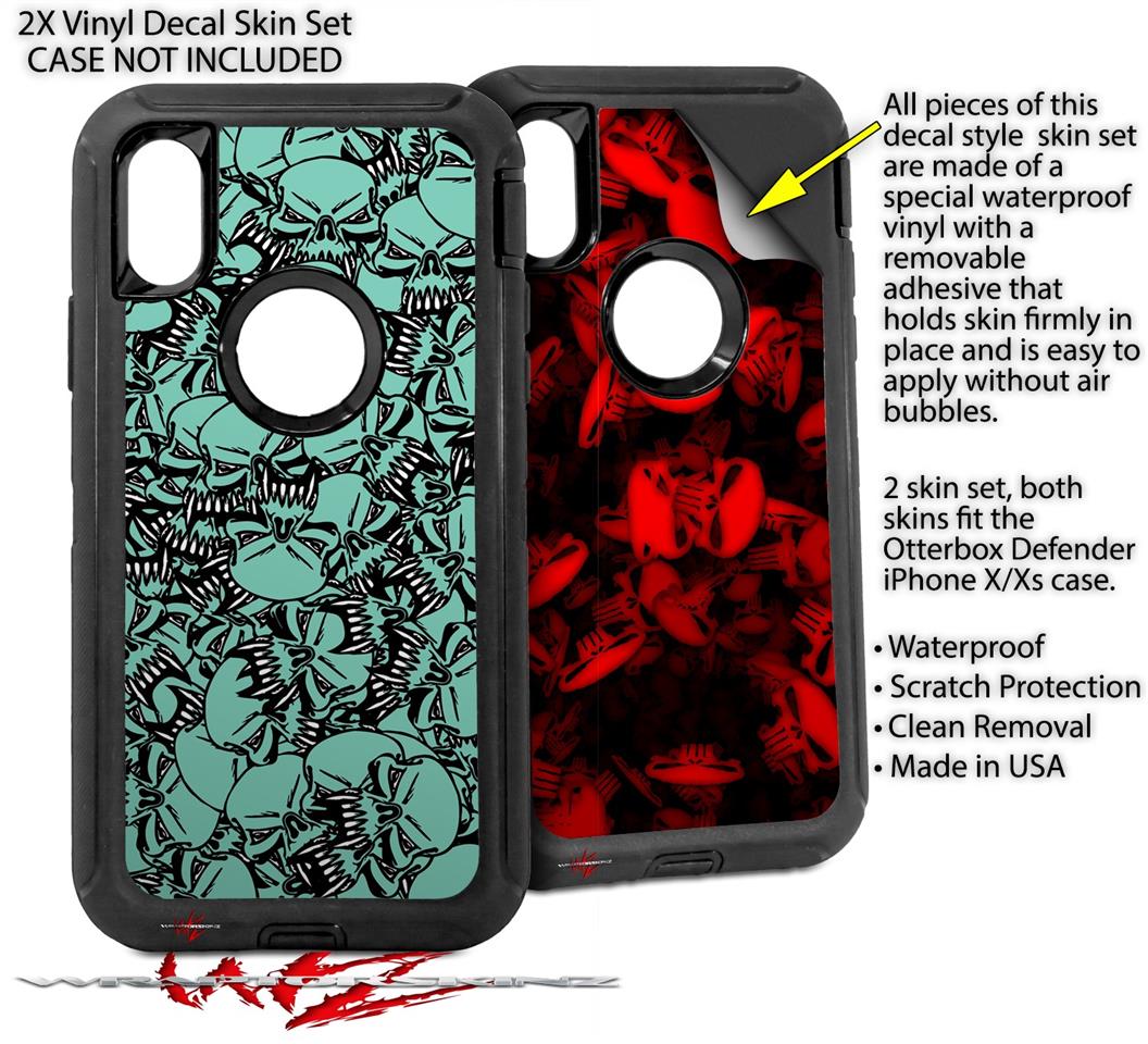 2x Decal style Skin Wrap Set compatible with Otterbox Defender iPhone X and Xs Case - Scattered Skulls Seafoam Green (CASE NOT INCLUDED)