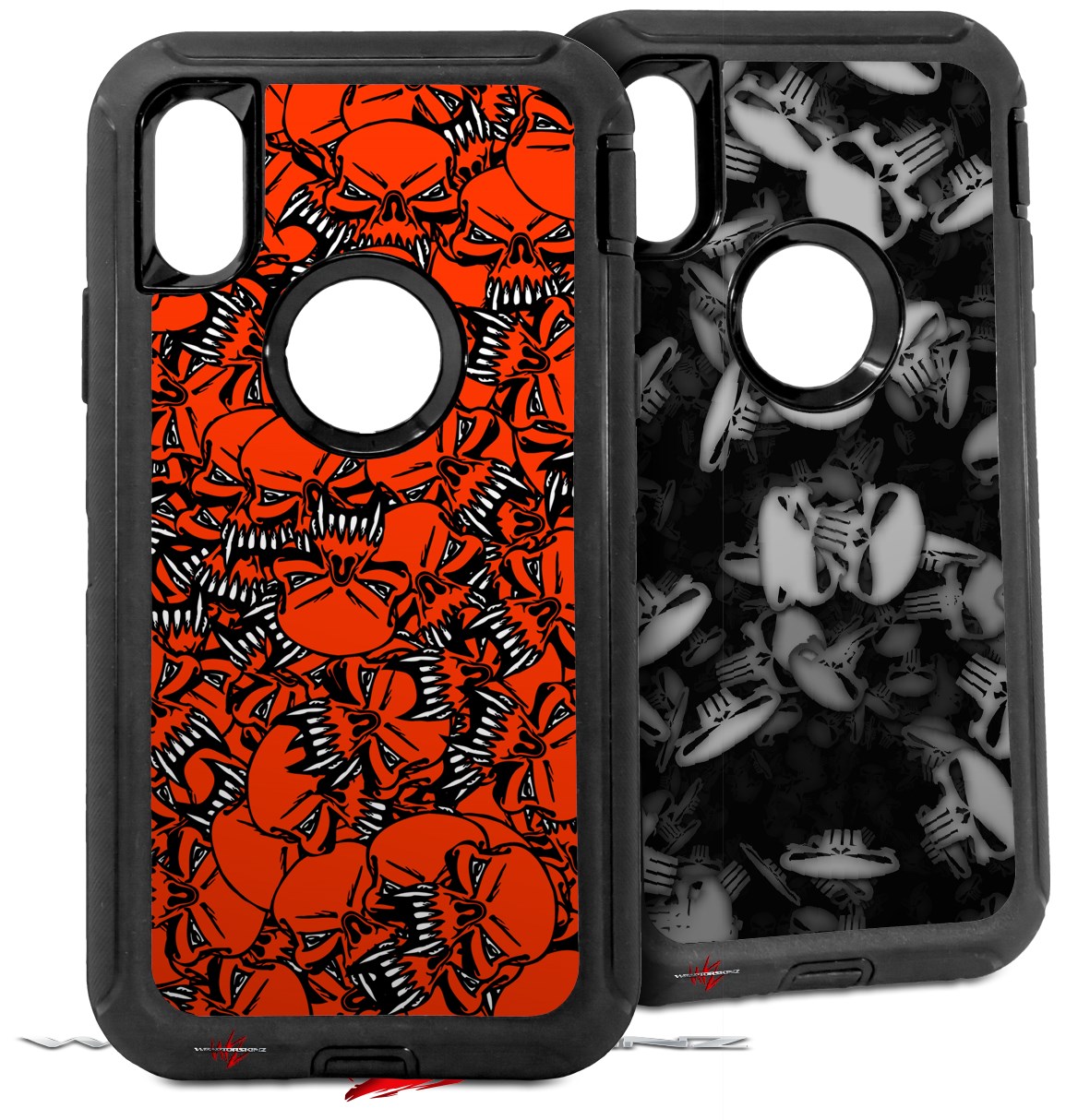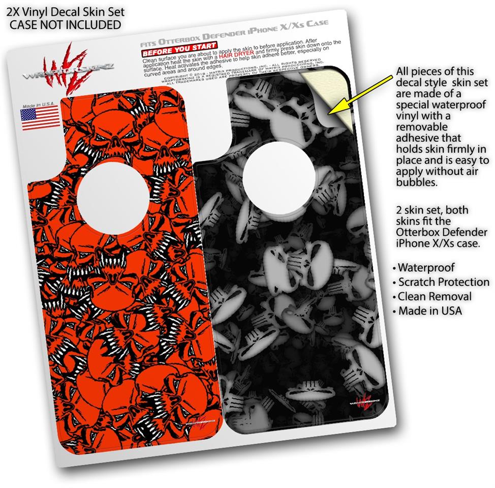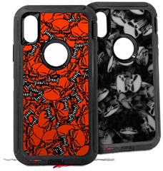2x Decal style Skin Wrap Set compatible with Otterbox Defender iPhone X and Xs Case - Scattered Skulls Red (CASE NOT INCLUDED)