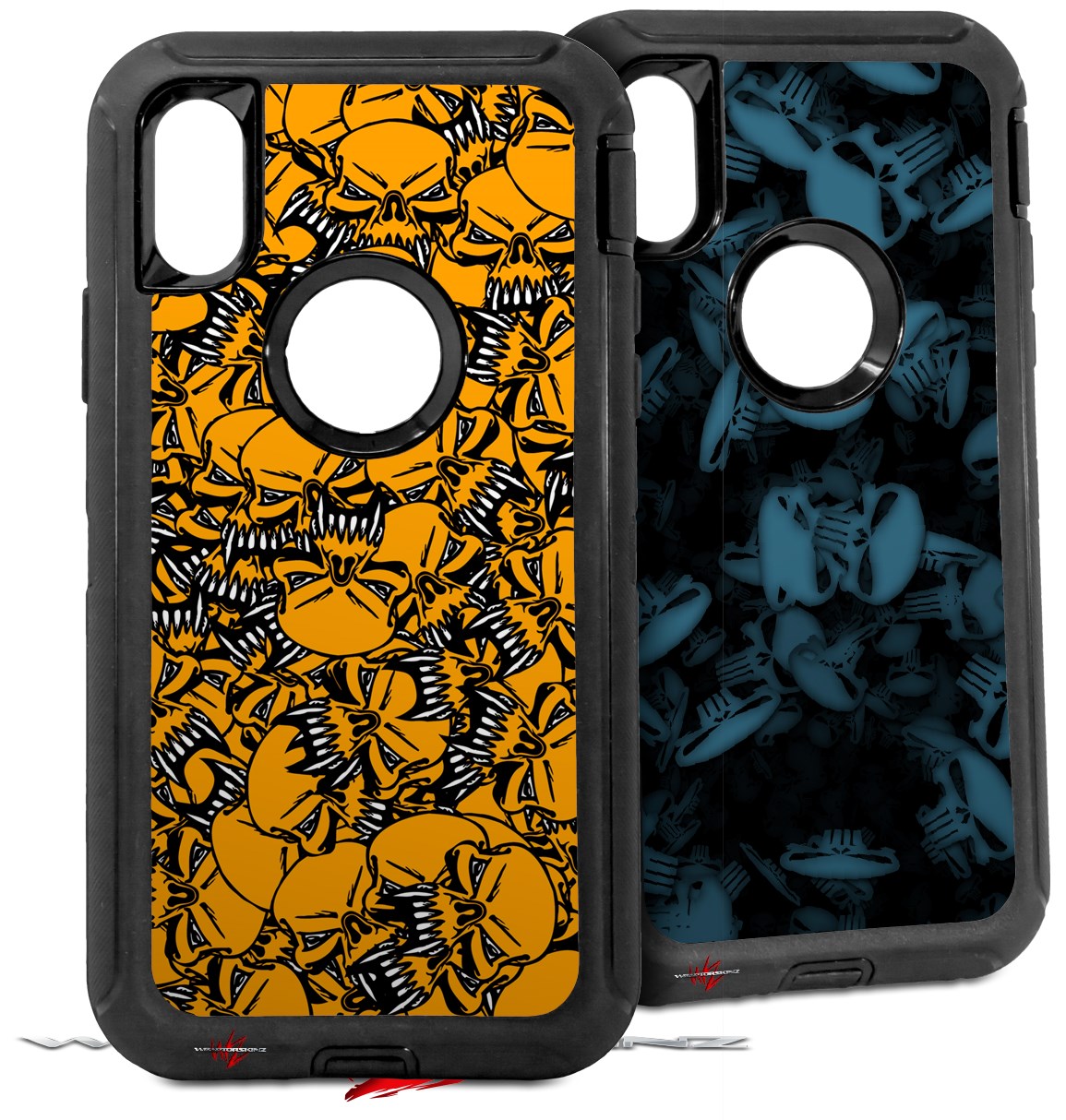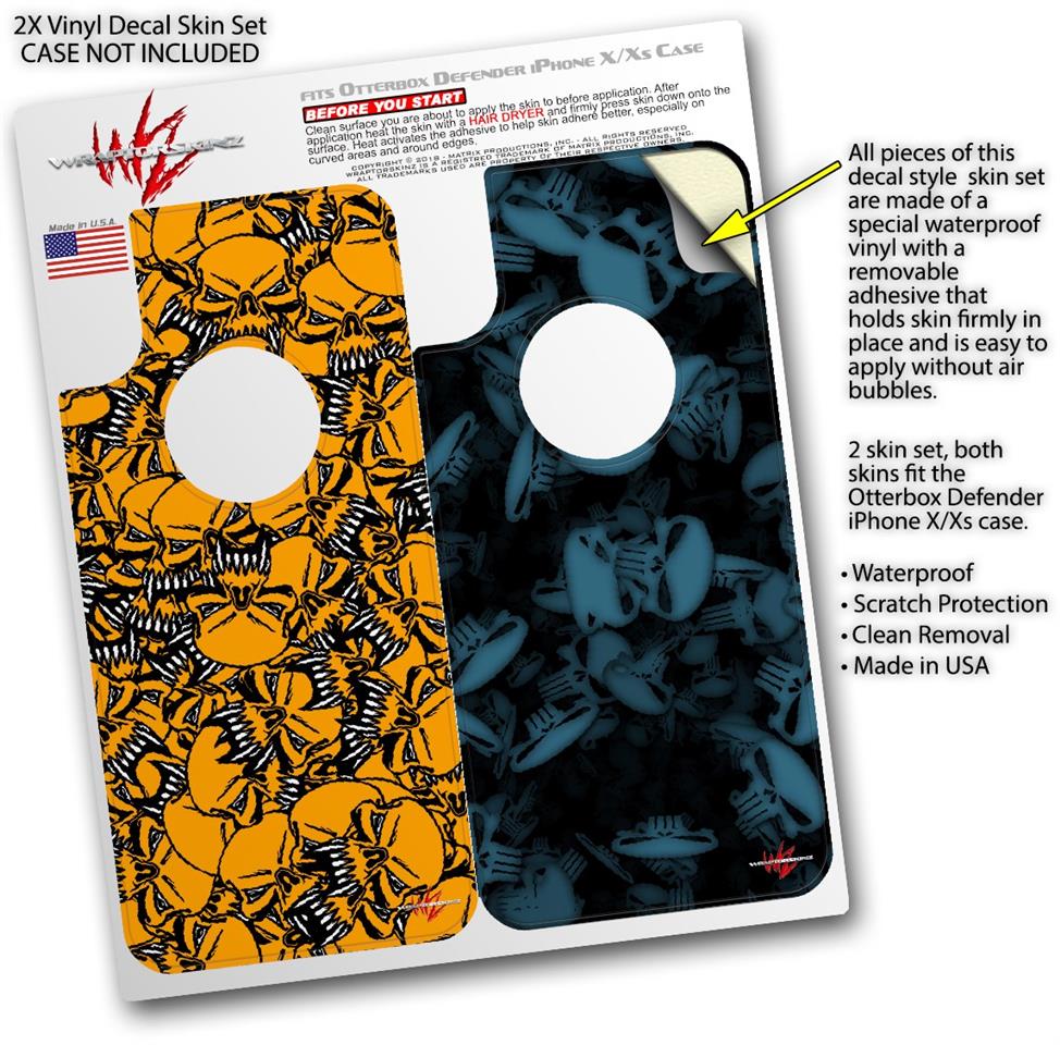2x Decal style Skin Wrap Set compatible with Otterbox Defender iPhone X and Xs Case - Scattered Skulls Orange (CASE NOT INCLUDED)