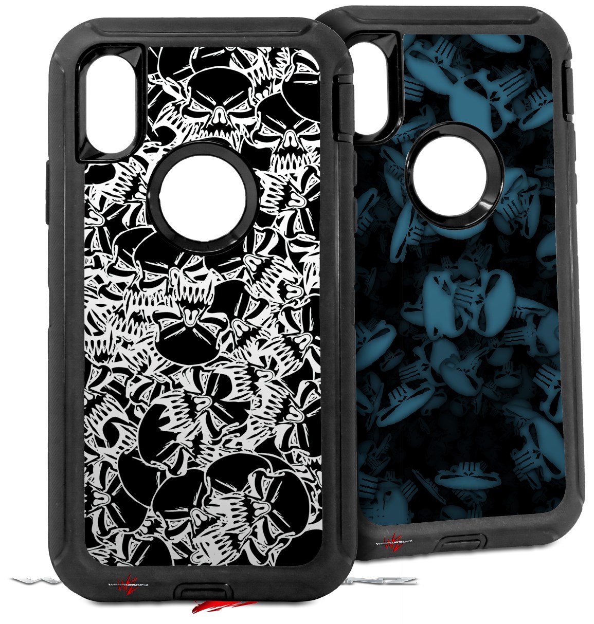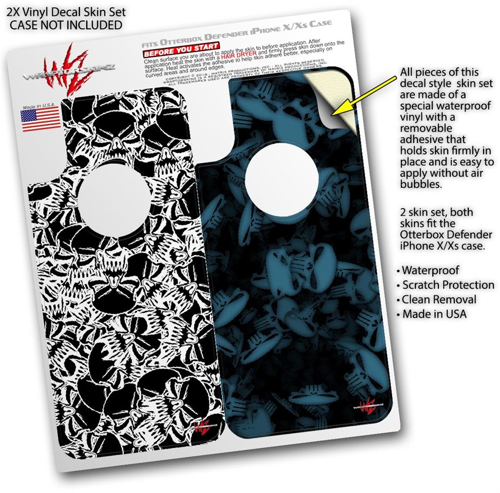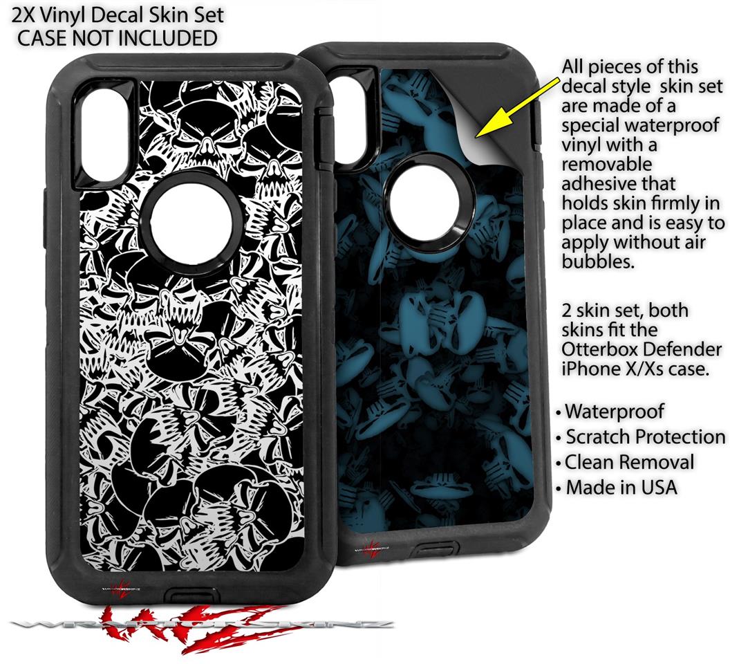 2x Decal style Skin Wrap Set compatible with Otterbox Defender iPhone X and Xs Case - Scattered Skulls Black (CASE NOT INCLUDED)