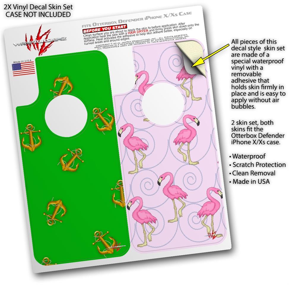 2x Decal style Skin Wrap Set compatible with Otterbox Defender iPhone X and Xs Case - Anchors Away Green (CASE NOT INCLUDED)
