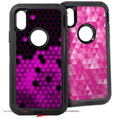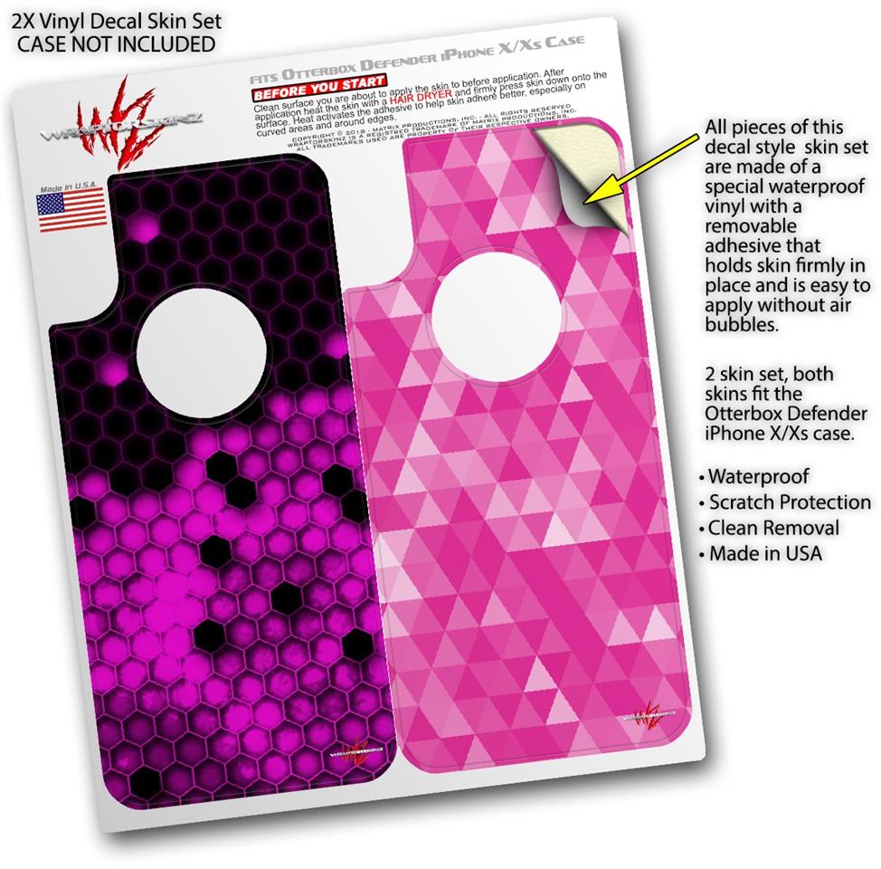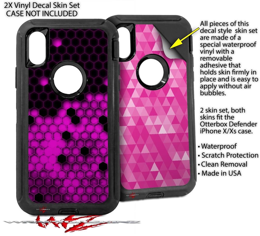 2x Decal style Skin Wrap Set compatible with Otterbox Defender iPhone X and Xs Case - HEX Hot Pink (CASE NOT INCLUDED)