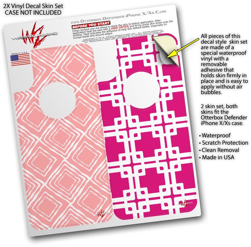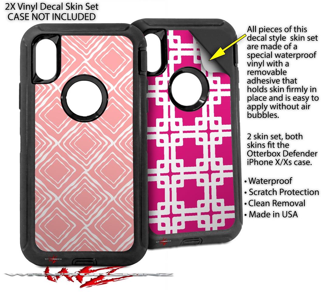 2x Decal style Skin Wrap Set compatible with Otterbox Defender iPhone X and Xs Case - Wavey Pink (CASE NOT INCLUDED)