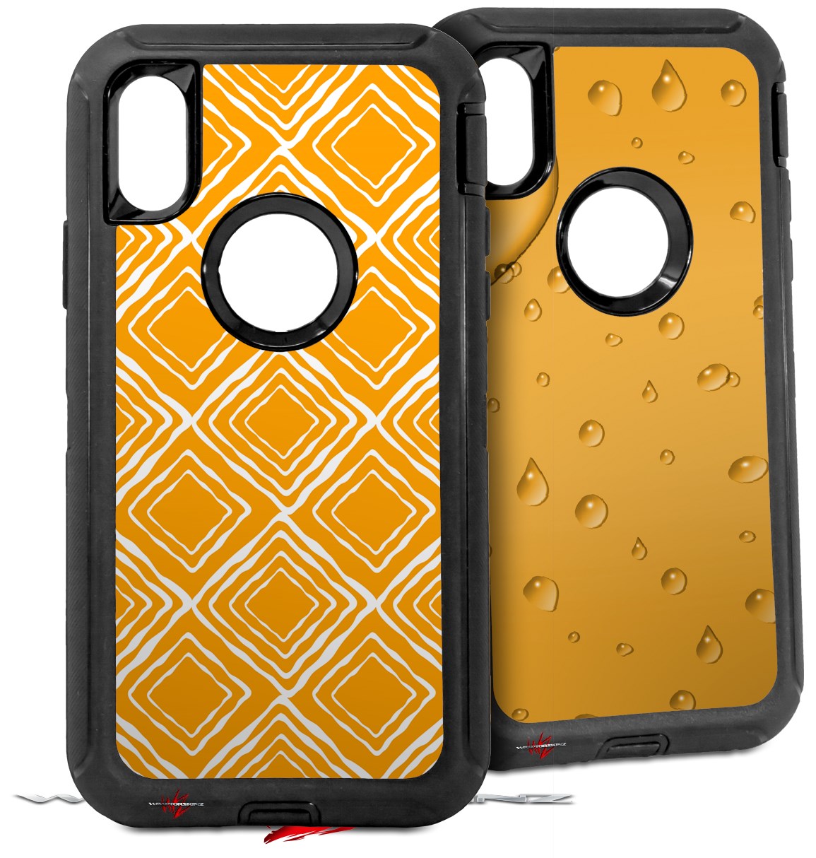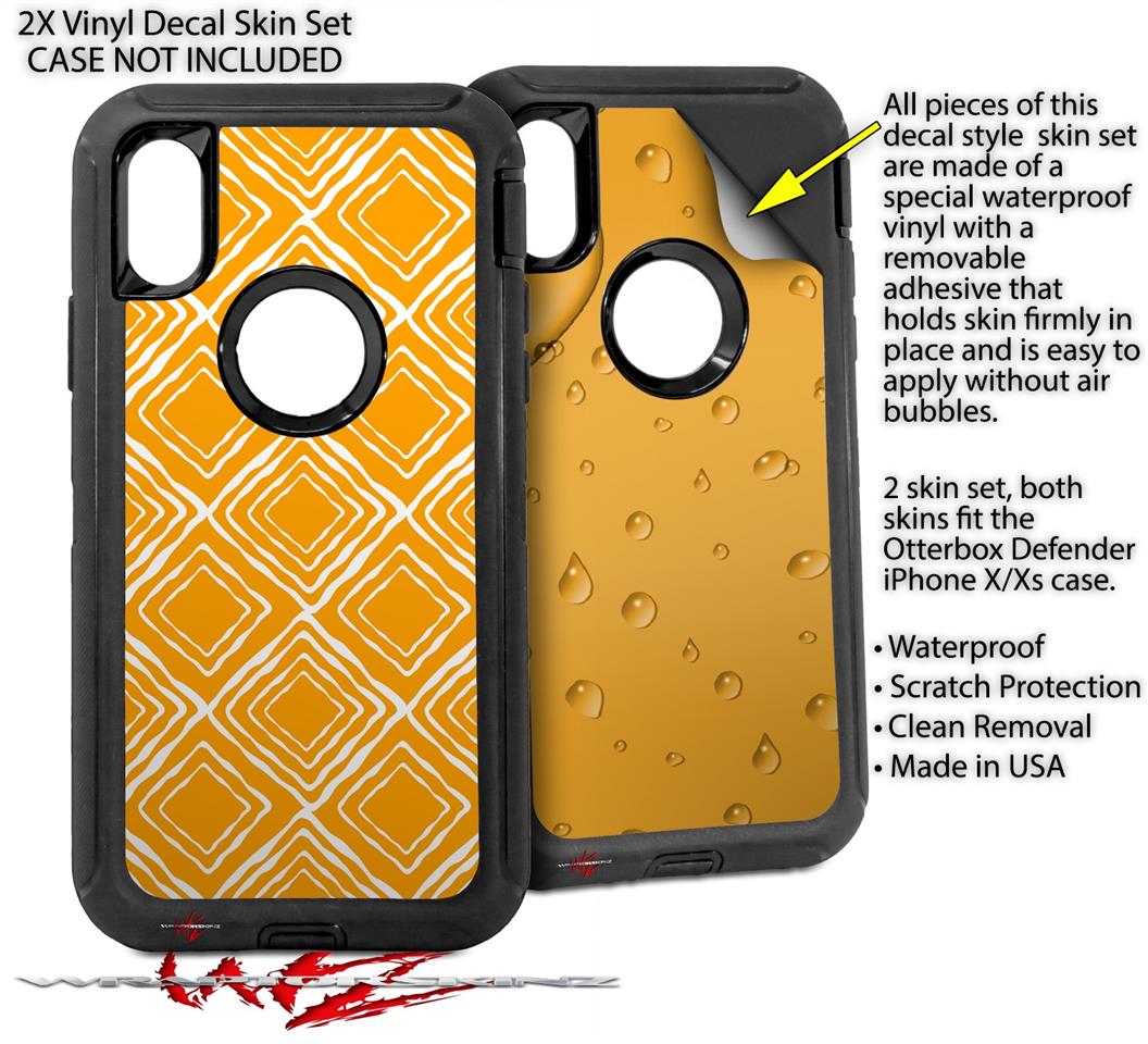 2x Decal style Skin Wrap Set compatible with Otterbox Defender iPhone X and Xs Case - Wavey Orange (CASE NOT INCLUDED)