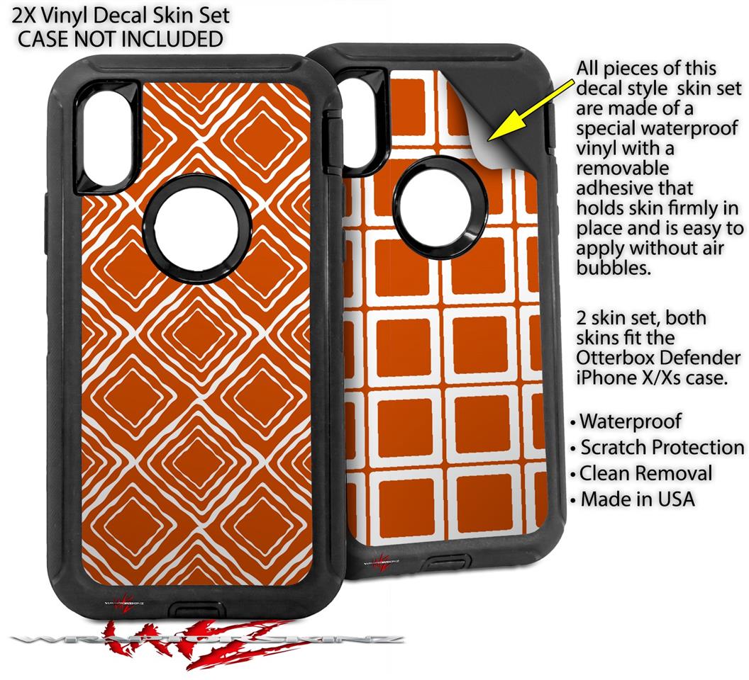 2x Decal style Skin Wrap Set compatible with Otterbox Defender iPhone X and Xs Case - Wavey Burnt Orange (CASE NOT INCLUDED)