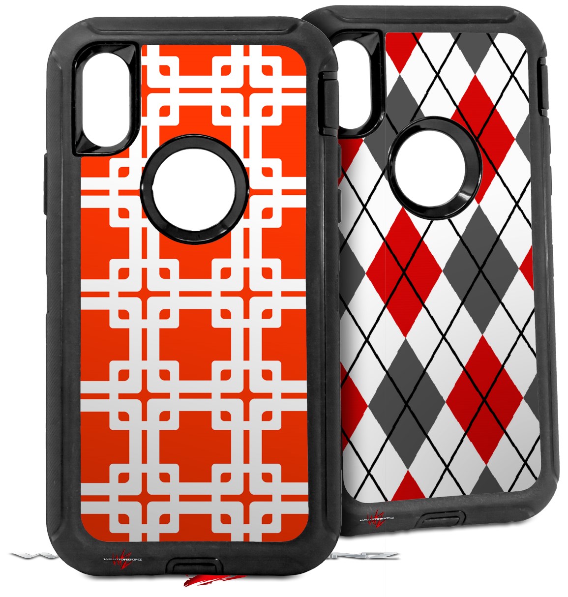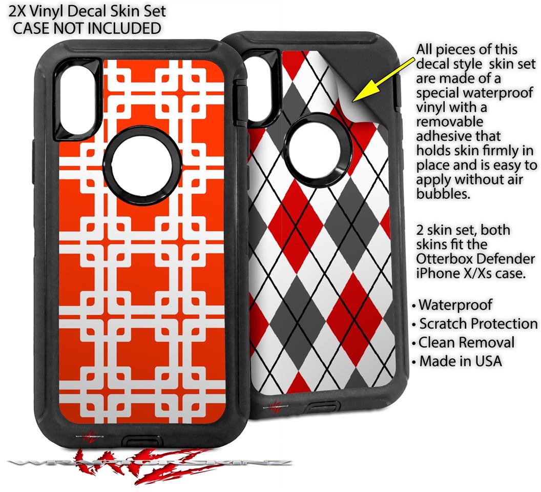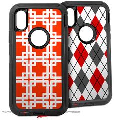 2x Decal style Skin Wrap Set compatible with Otterbox Defender iPhone X and Xs Case - Boxed Red (CASE NOT INCLUDED)