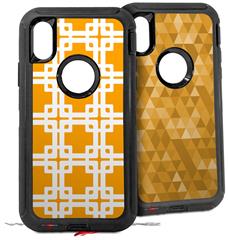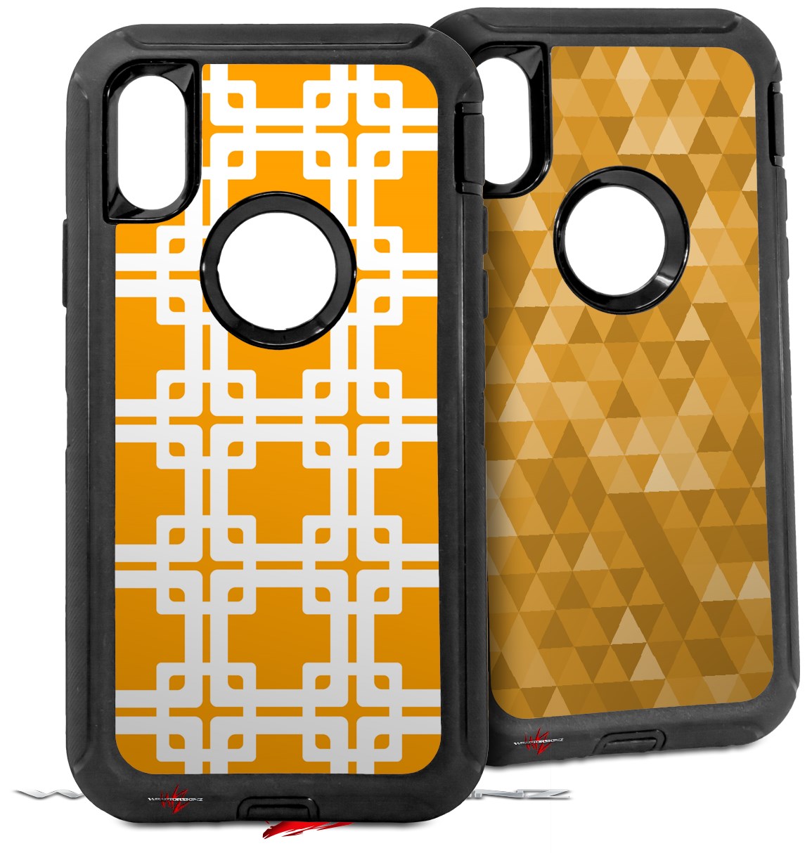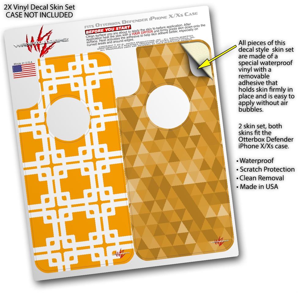 2x Decal style Skin Wrap Set compatible with Otterbox Defender iPhone X and Xs Case - Boxed Orange (CASE NOT INCLUDED)