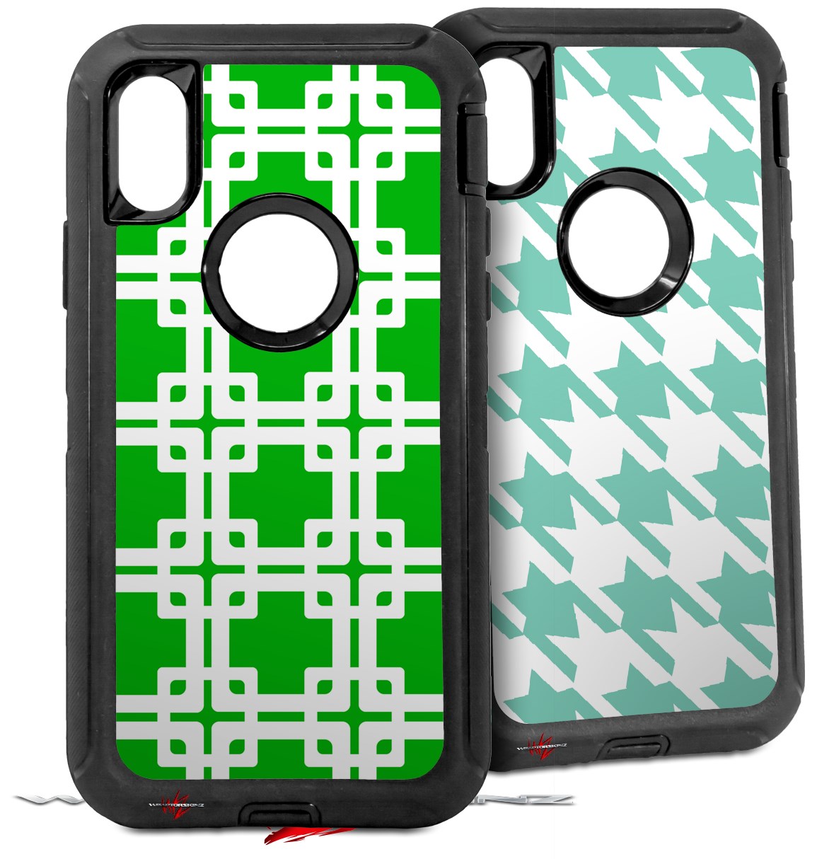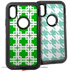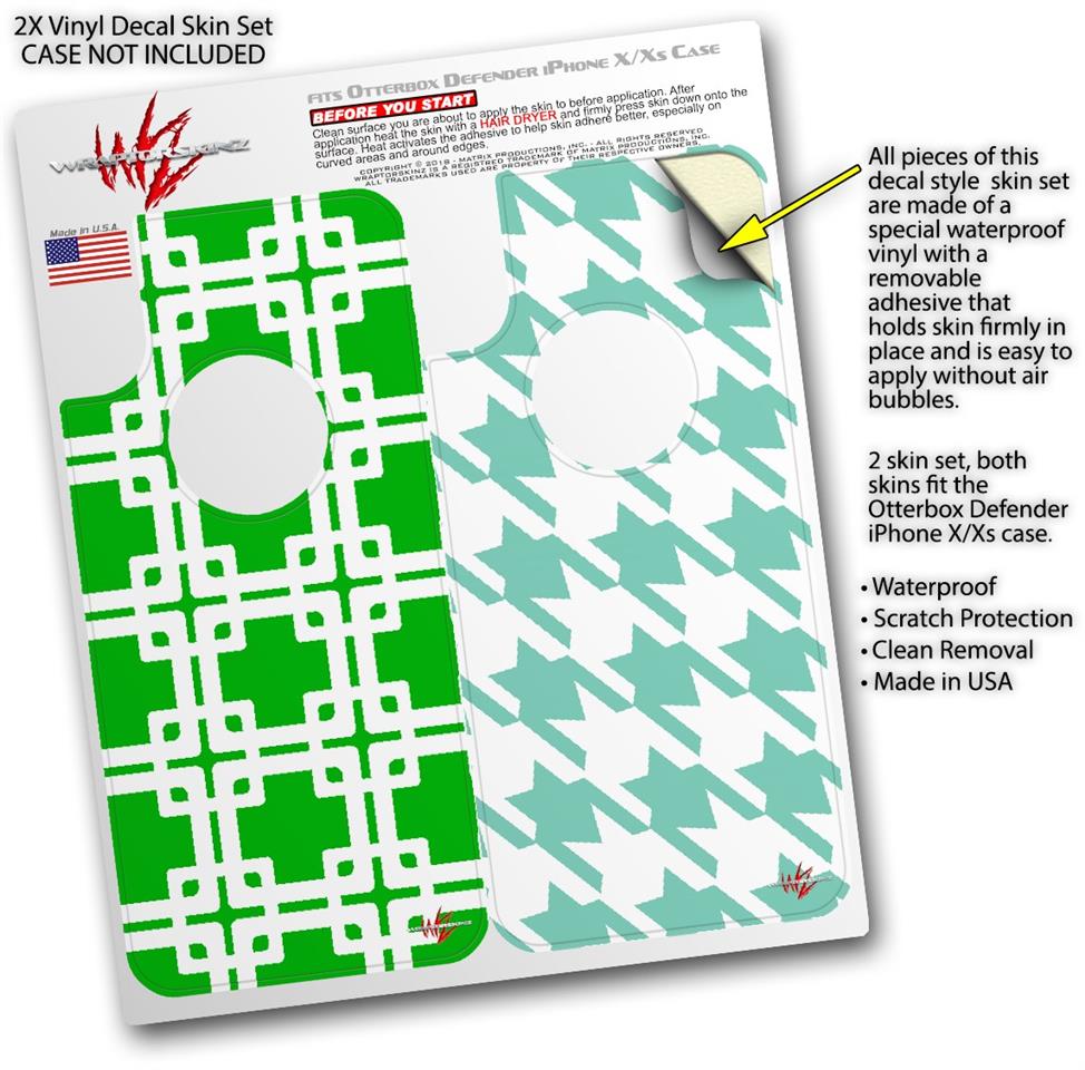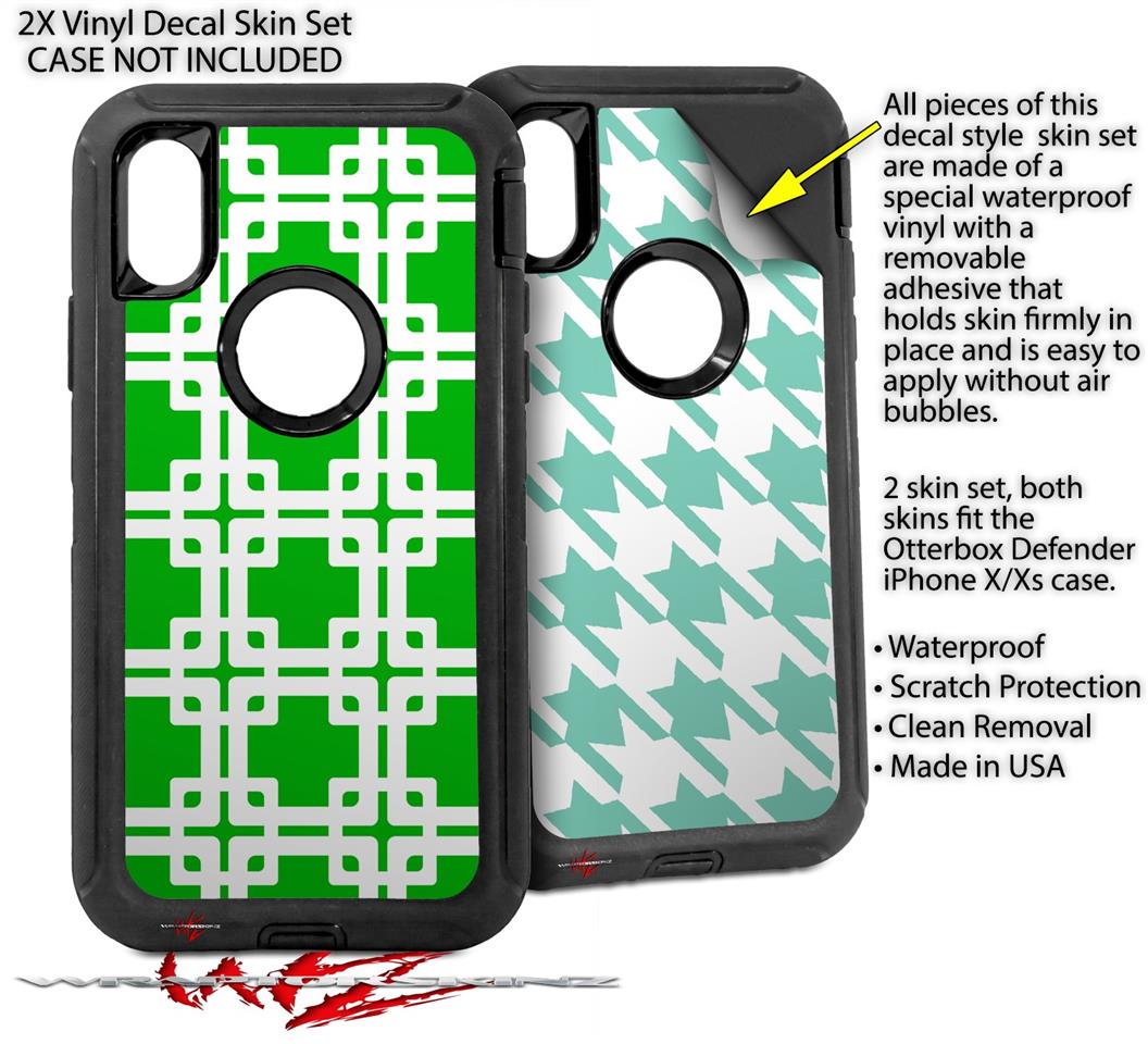 2x Decal style Skin Wrap Set compatible with Otterbox Defender iPhone X and Xs Case - Boxed Green (CASE NOT INCLUDED)