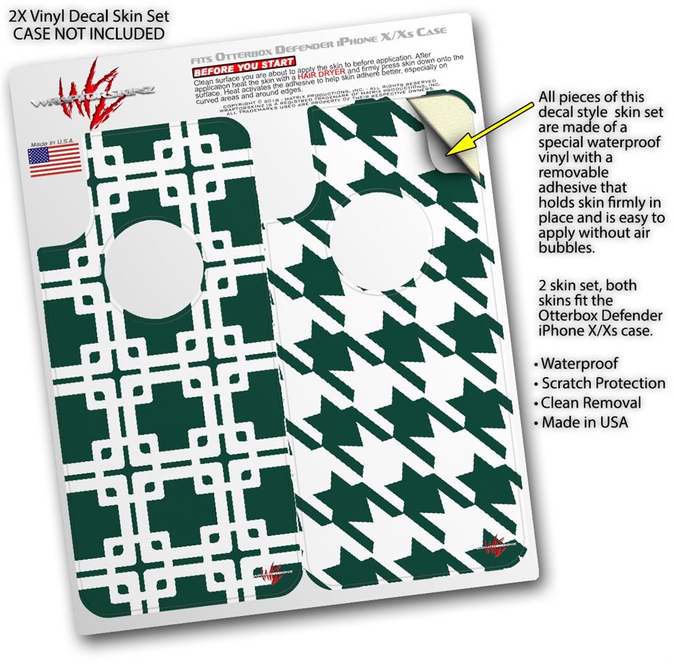 2x Decal style Skin Wrap Set compatible with Otterbox Defender iPhone X and Xs Case - Boxed Hunter Green (CASE NOT INCLUDED)