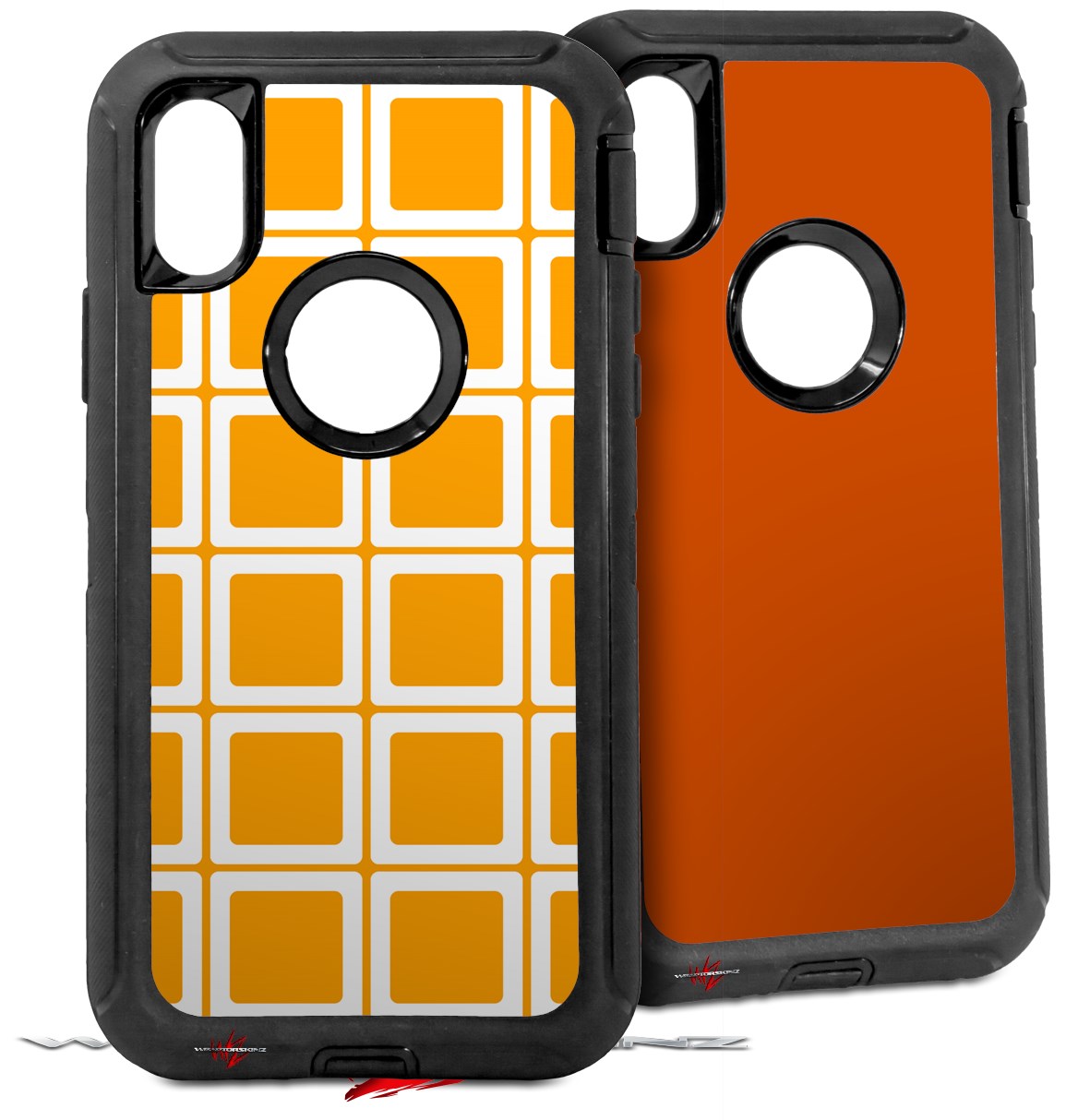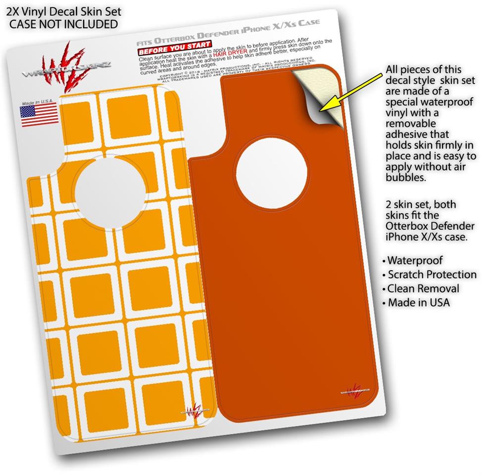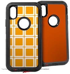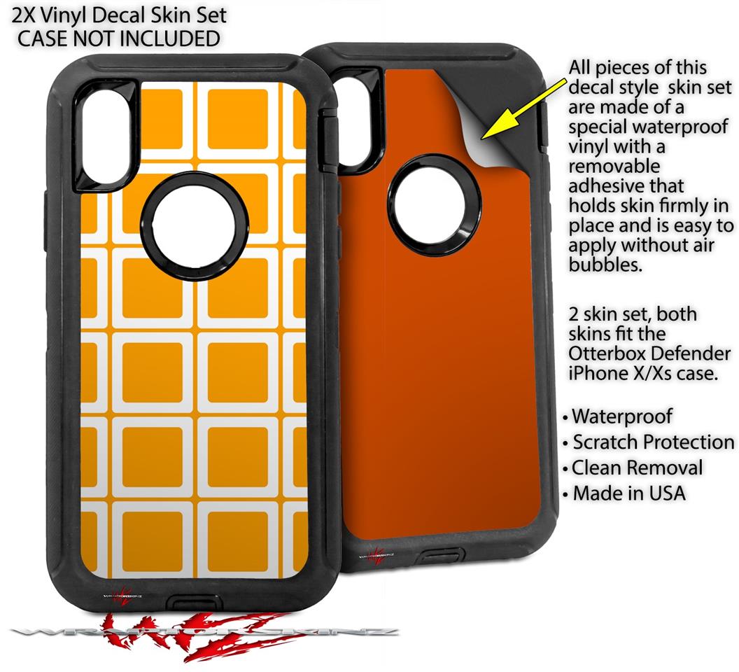 2x Decal style Skin Wrap Set compatible with Otterbox Defender iPhone X and Xs Case - Squared Orange (CASE NOT INCLUDED)