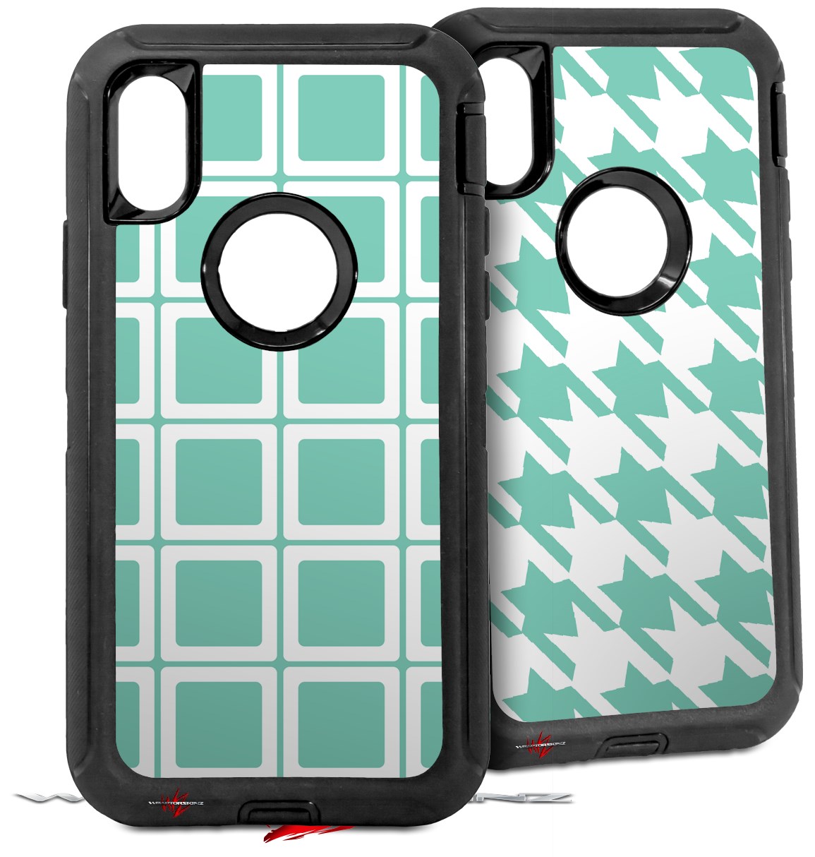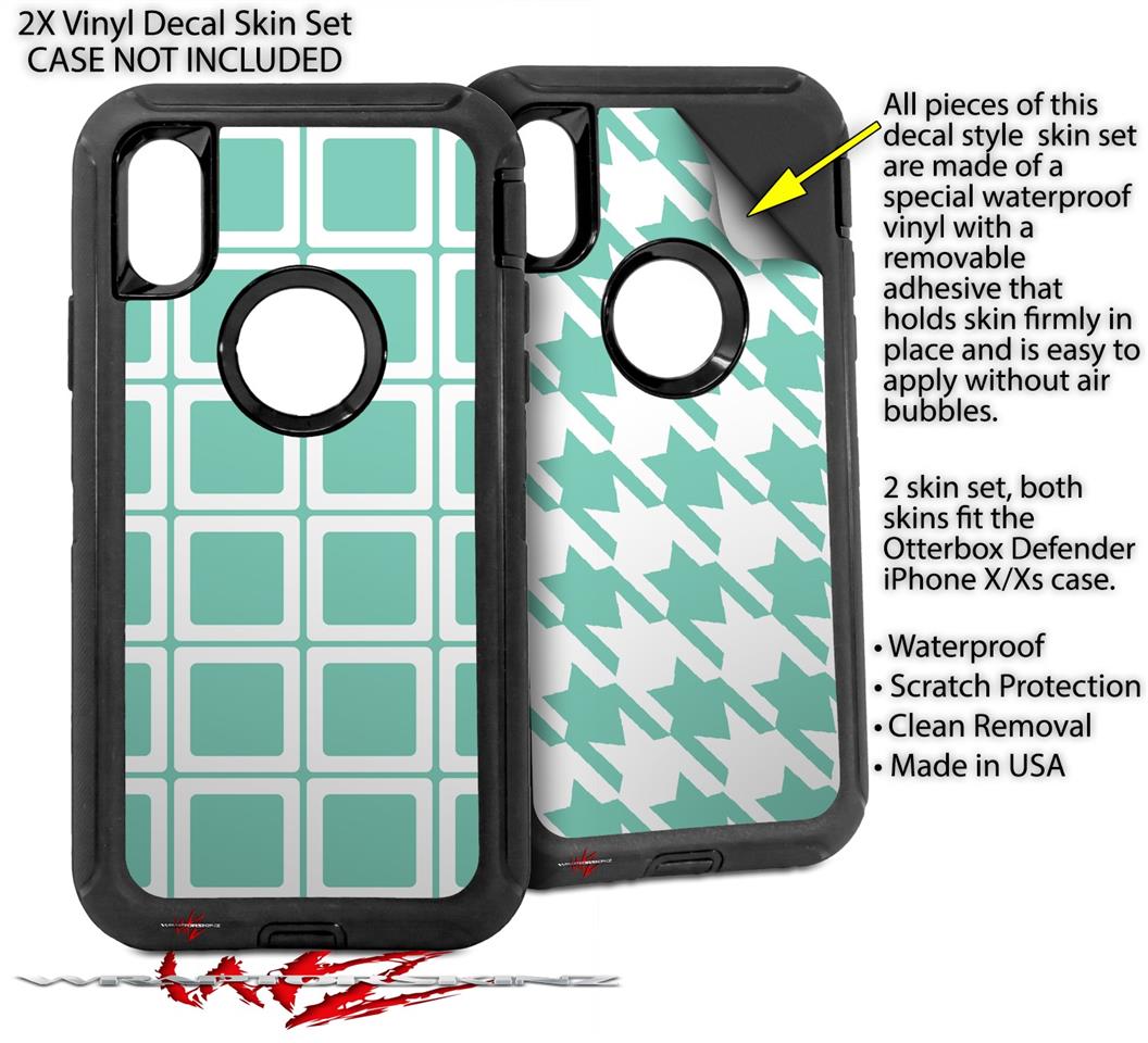 2x Decal style Skin Wrap Set compatible with Otterbox Defender iPhone X and Xs Case - Squared Seafoam Green (CASE NOT INCLUDED)