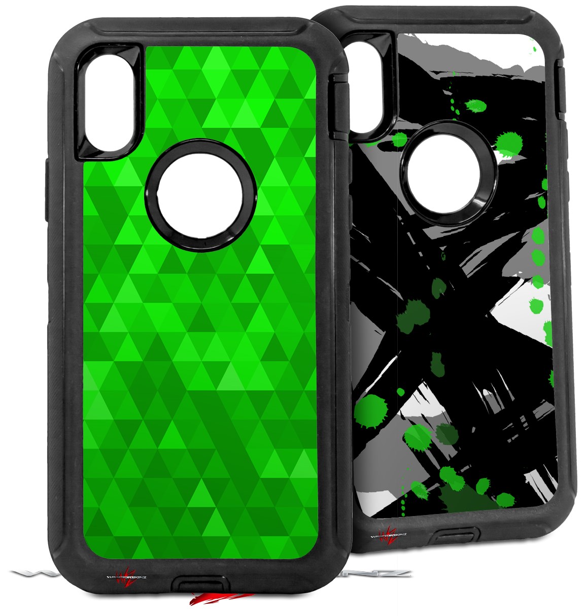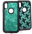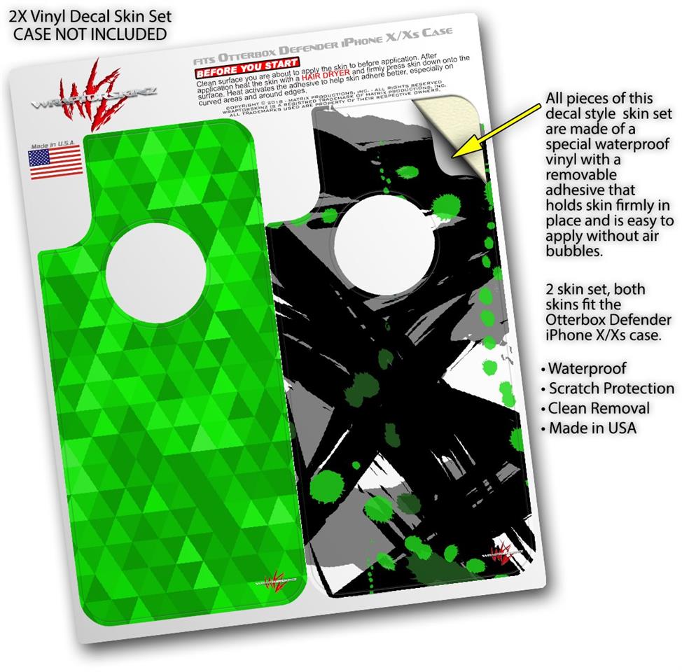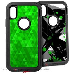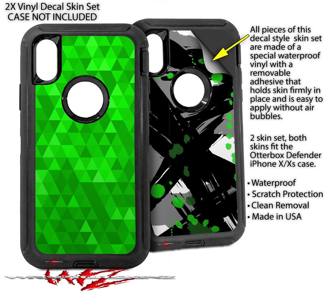 2x Decal style Skin Wrap Set compatible with Otterbox Defender iPhone X and Xs Case - Triangle Mosaic Green (CASE NOT INCLUDED)