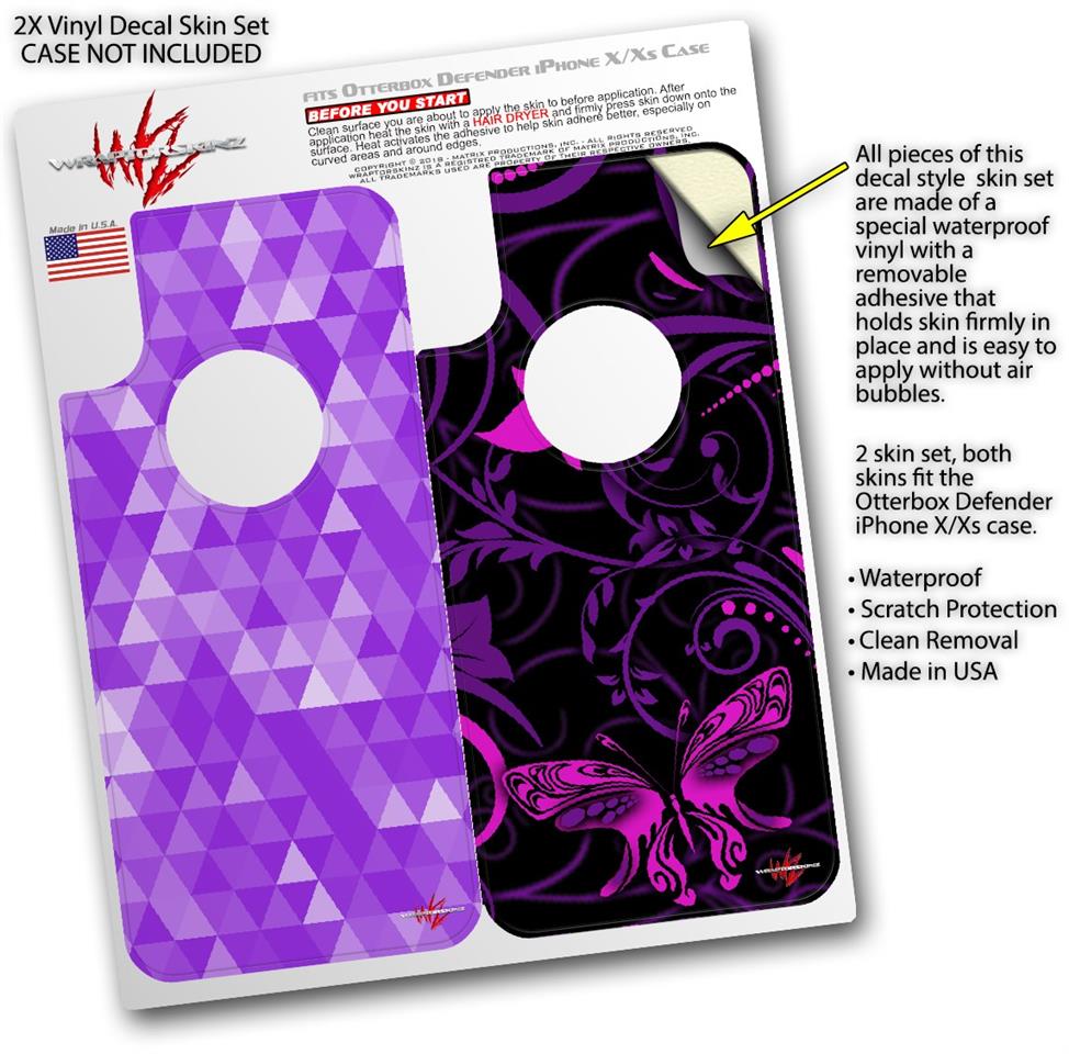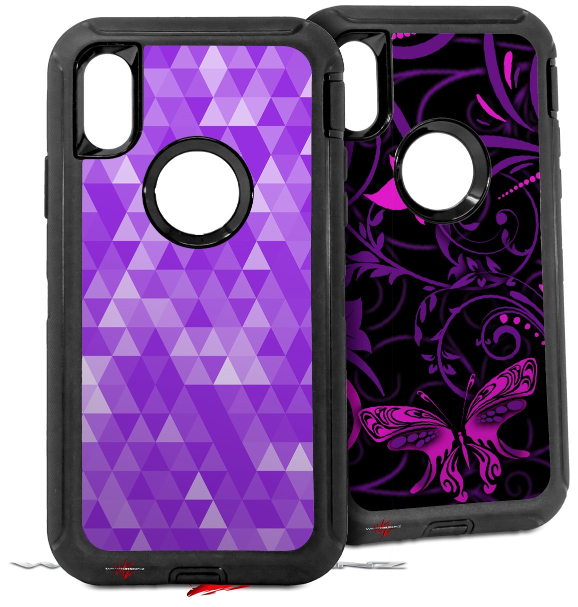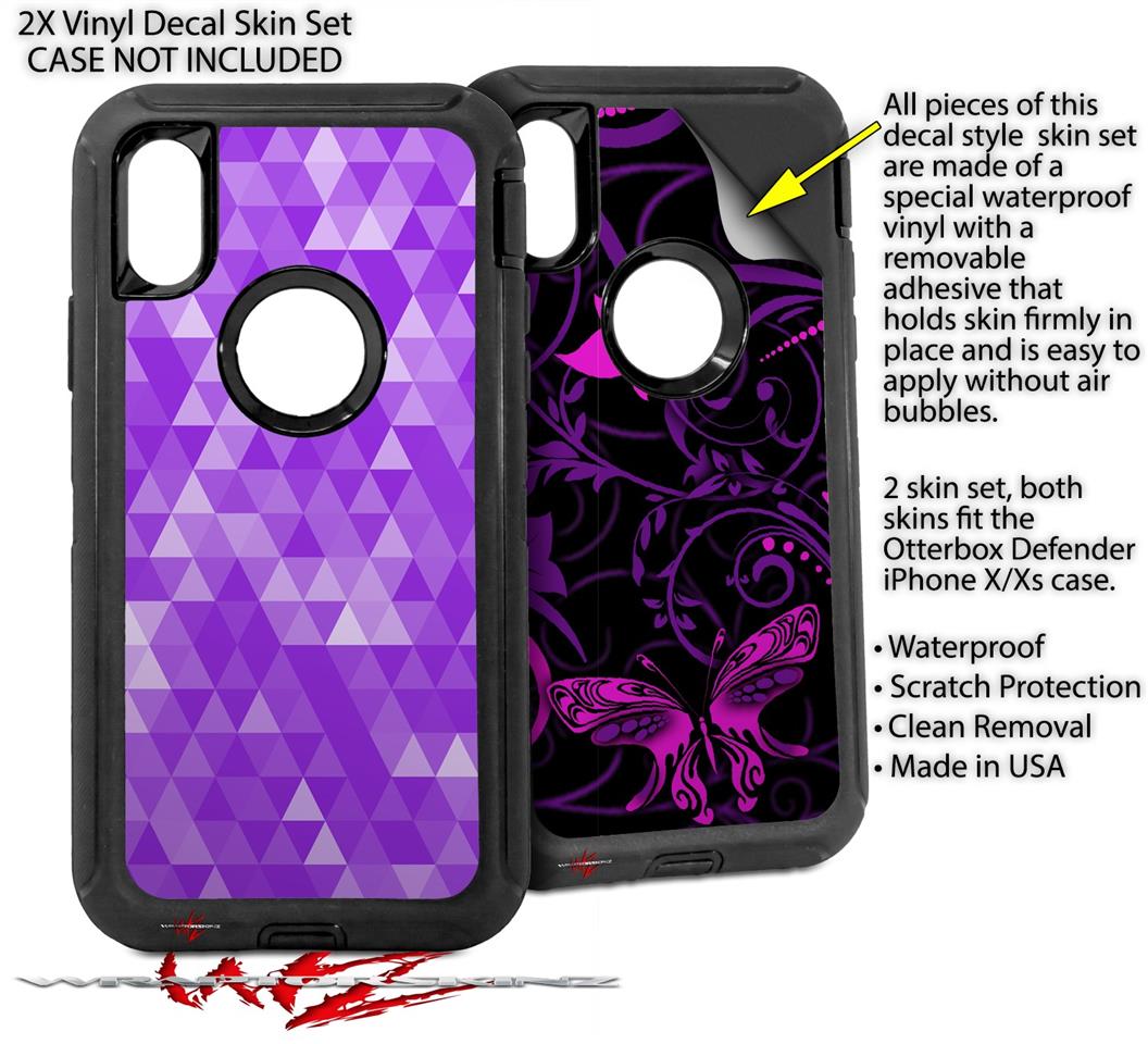 2x Decal style Skin Wrap Set compatible with Otterbox Defender iPhone X and Xs Case - Triangle Mosaic Purple (CASE NOT INCLUDED)