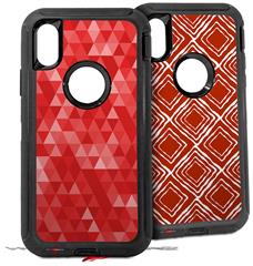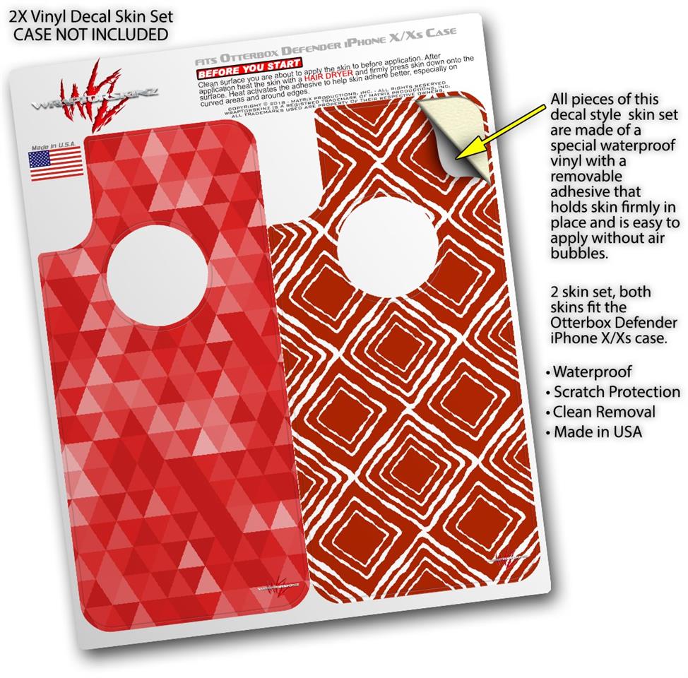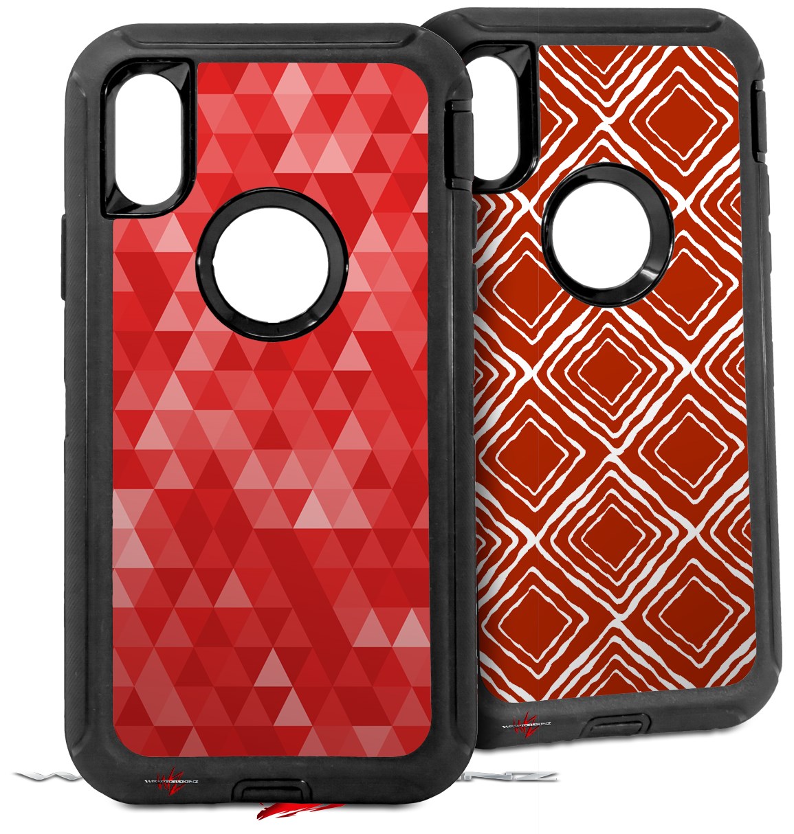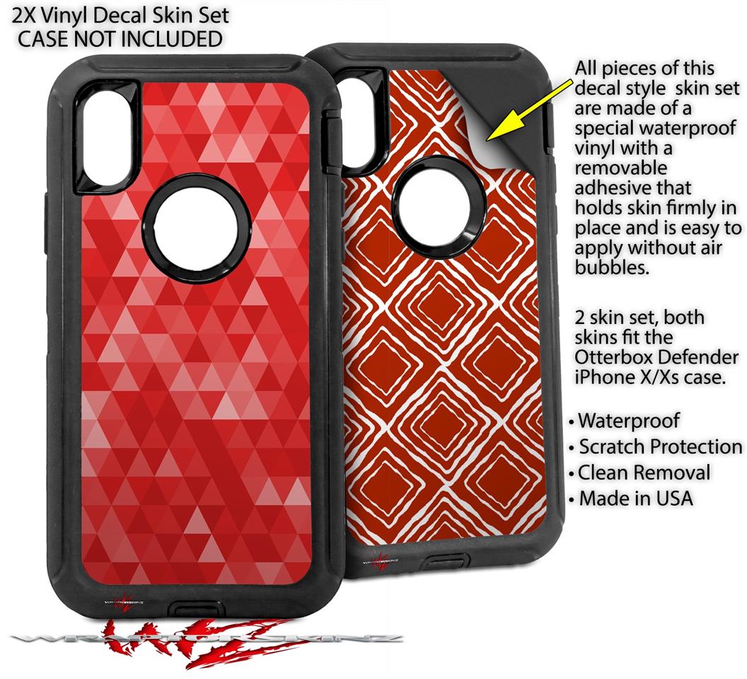 2x Decal style Skin Wrap Set compatible with Otterbox Defender iPhone X and Xs Case - Triangle Mosaic Red (CASE NOT INCLUDED)