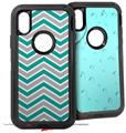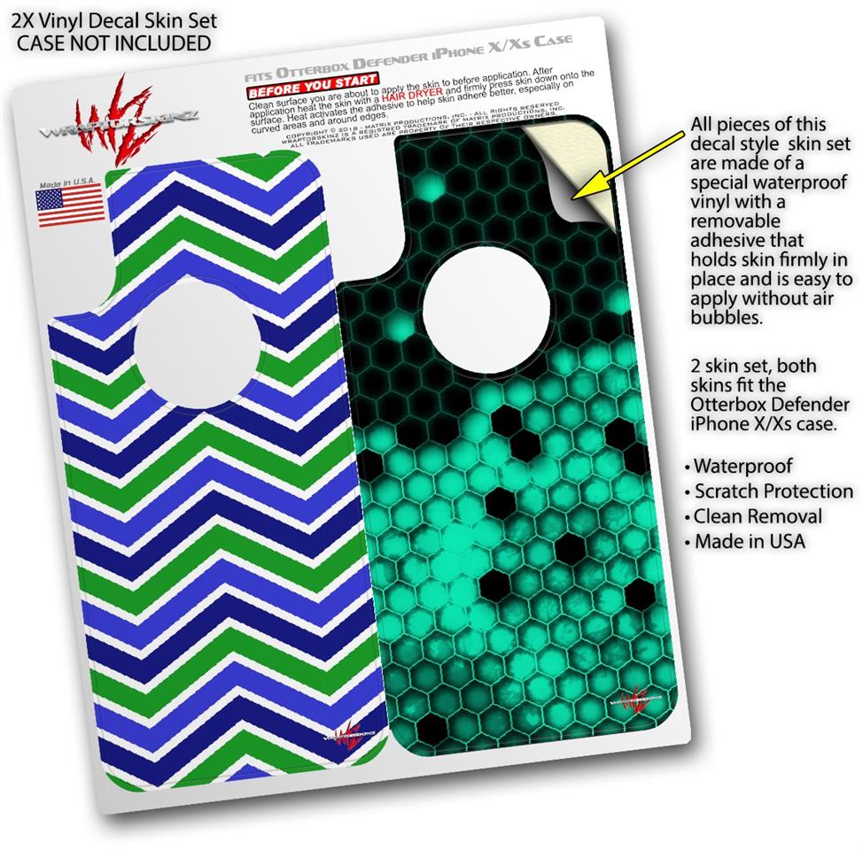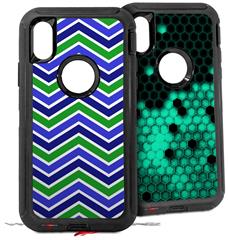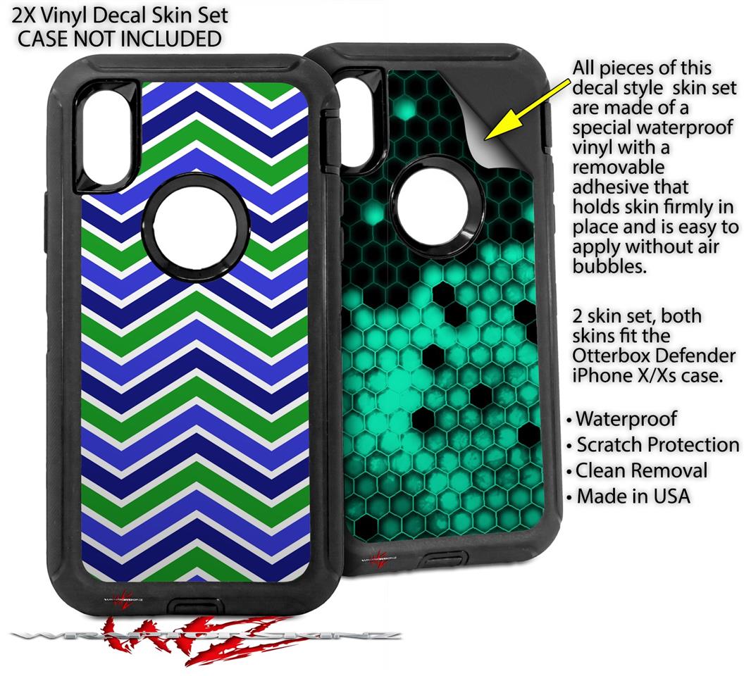 2x Decal style Skin Wrap Set compatible with Otterbox Defender iPhone X and Xs Case - Zig Zag Blue Green (CASE NOT INCLUDED)
