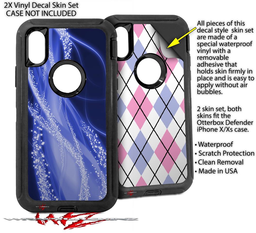 2x Decal style Skin Wrap Set compatible with Otterbox Defender iPhone X and Xs Case - Mystic Vortex Blue (CASE NOT INCLUDED)