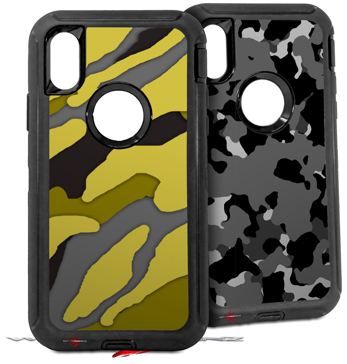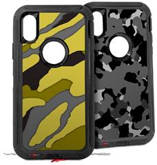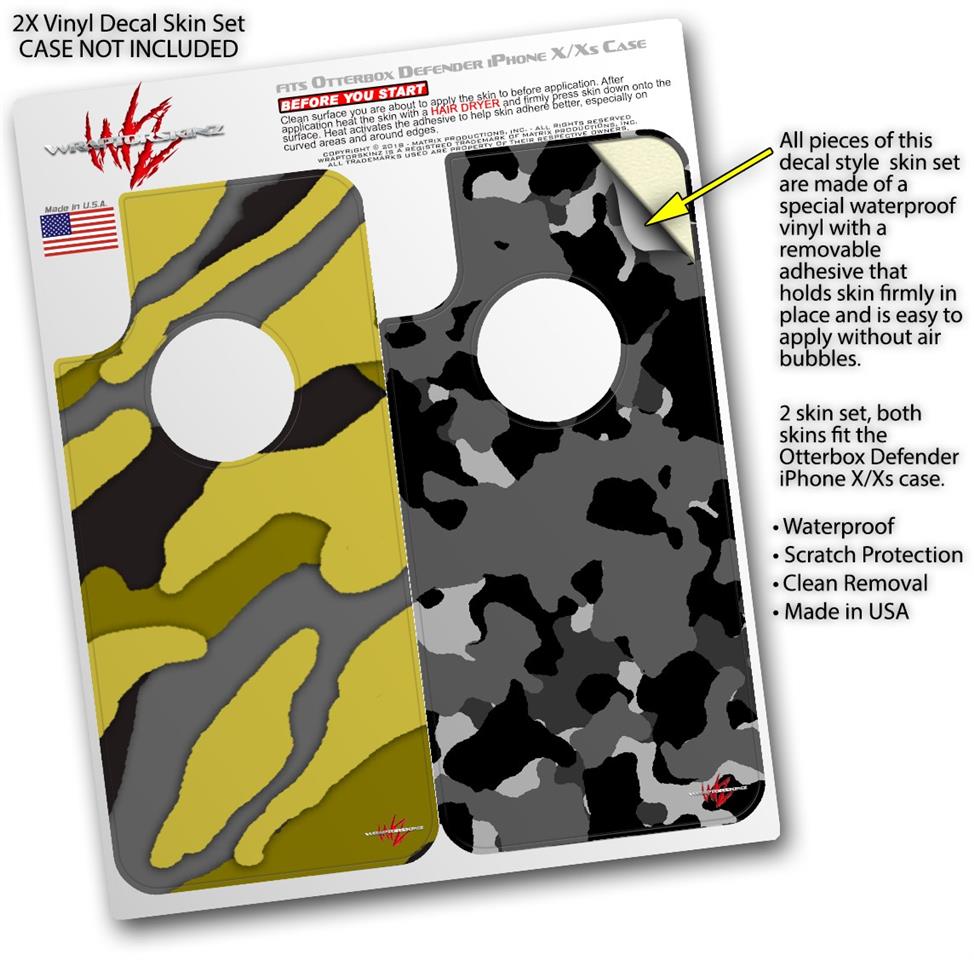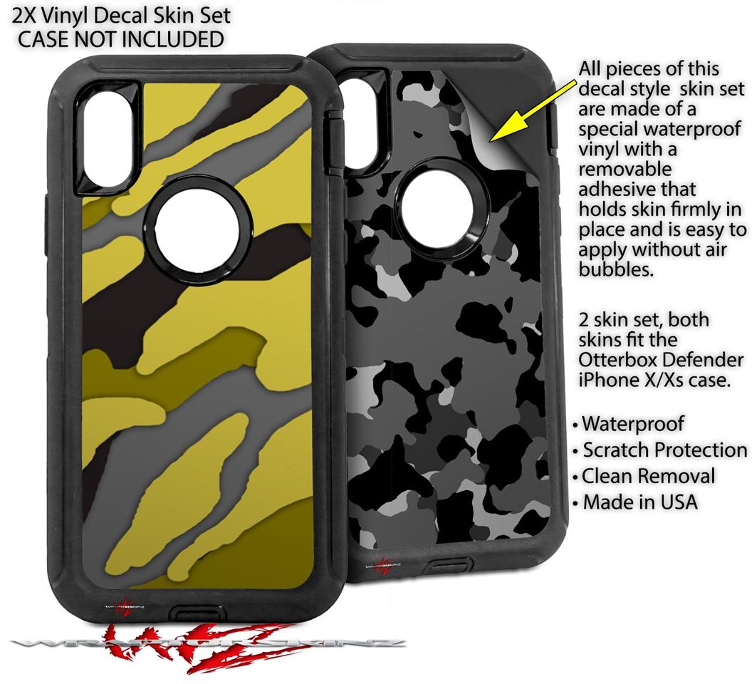 2x Decal style Skin Wrap Set compatible with Otterbox Defender iPhone X and Xs Case - Camouflage Yellow (CASE NOT INCLUDED)