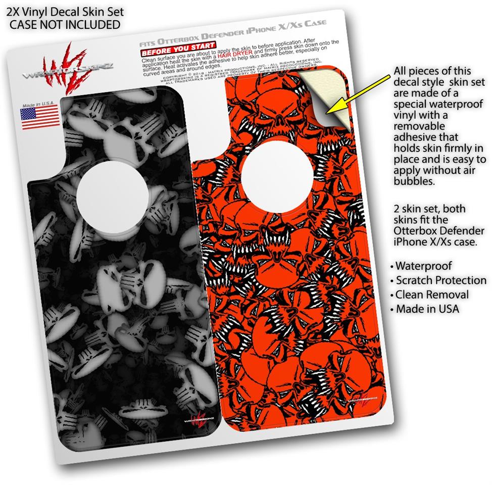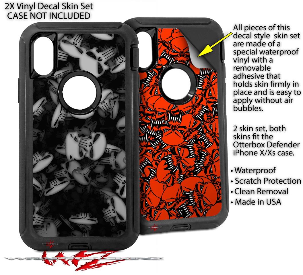 2x Decal style Skin Wrap Set compatible with Otterbox Defender iPhone X and Xs Case - Skulls Confetti White (CASE NOT INCLUDED)