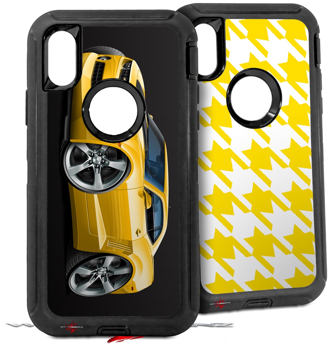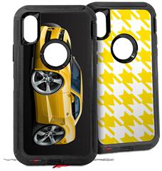 2x Decal style Skin Wrap Set compatible with Otterbox Defender iPhone X and Xs Case - 2010 Camaro RS Yellow (CASE NOT INCLUDED)