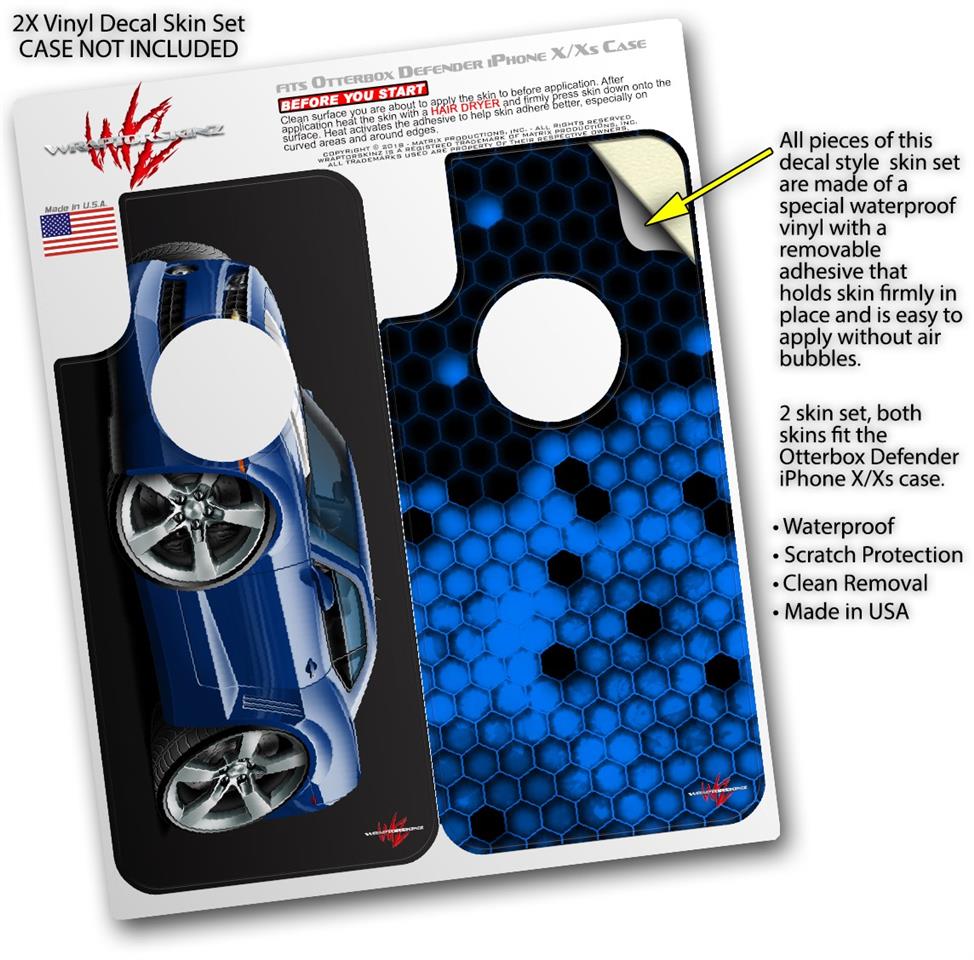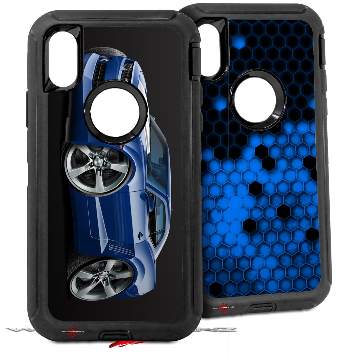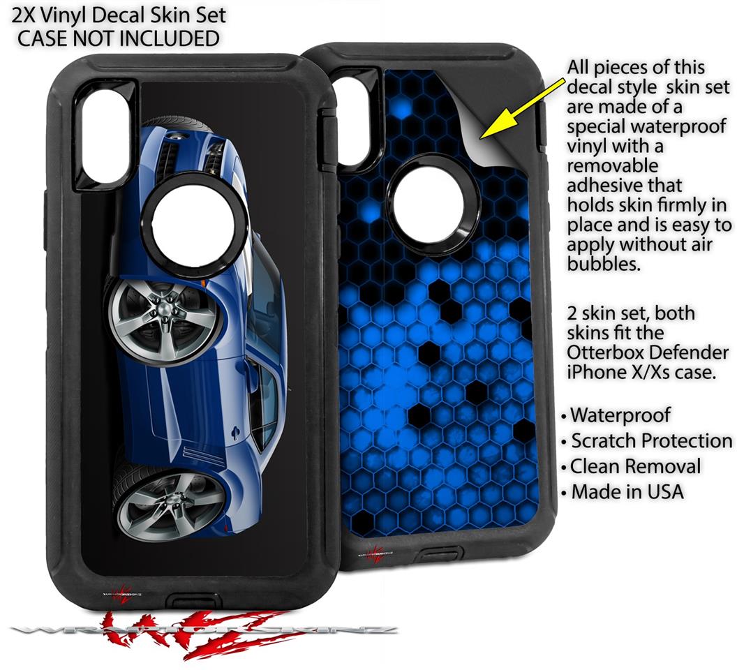 2x Decal style Skin Wrap Set compatible with Otterbox Defender iPhone X and Xs Case - 2010 Camaro RS Blue (CASE NOT INCLUDED)