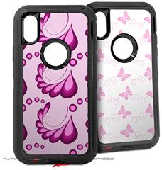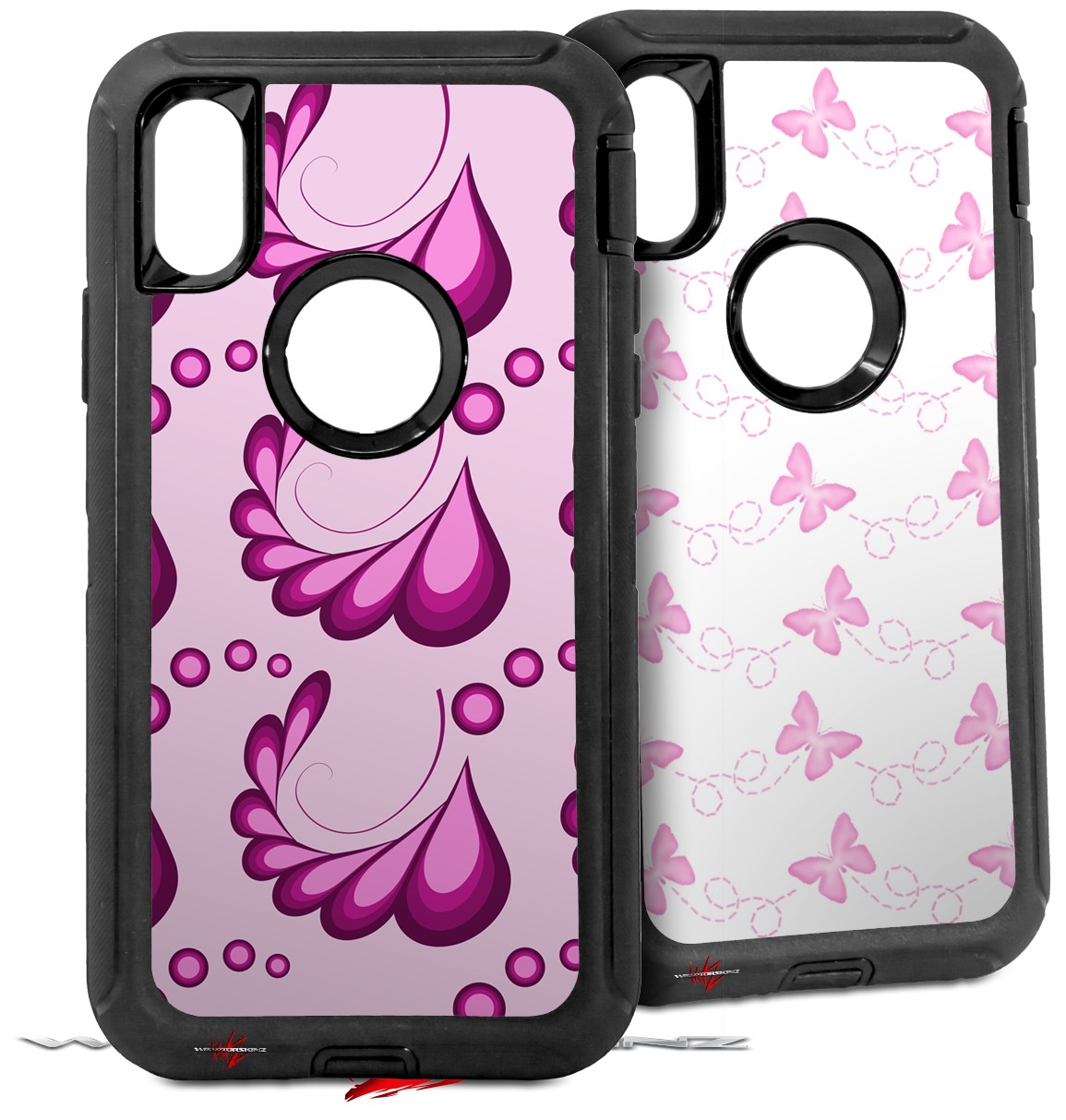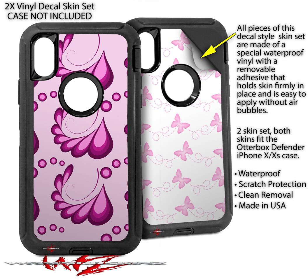 2x Decal style Skin Wrap Set compatible with Otterbox Defender iPhone X and Xs Case - Petals Pink (CASE NOT INCLUDED)
