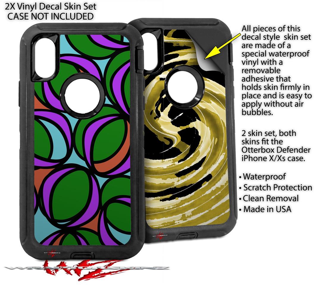 2x Decal style Skin Wrap Set compatible with Otterbox Defender iPhone X and Xs Case - Crazy Dots 03 (CASE NOT INCLUDED)