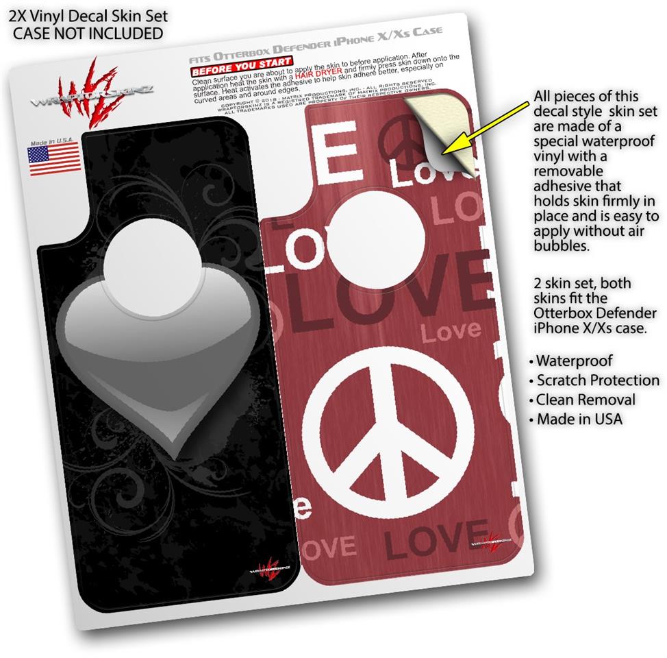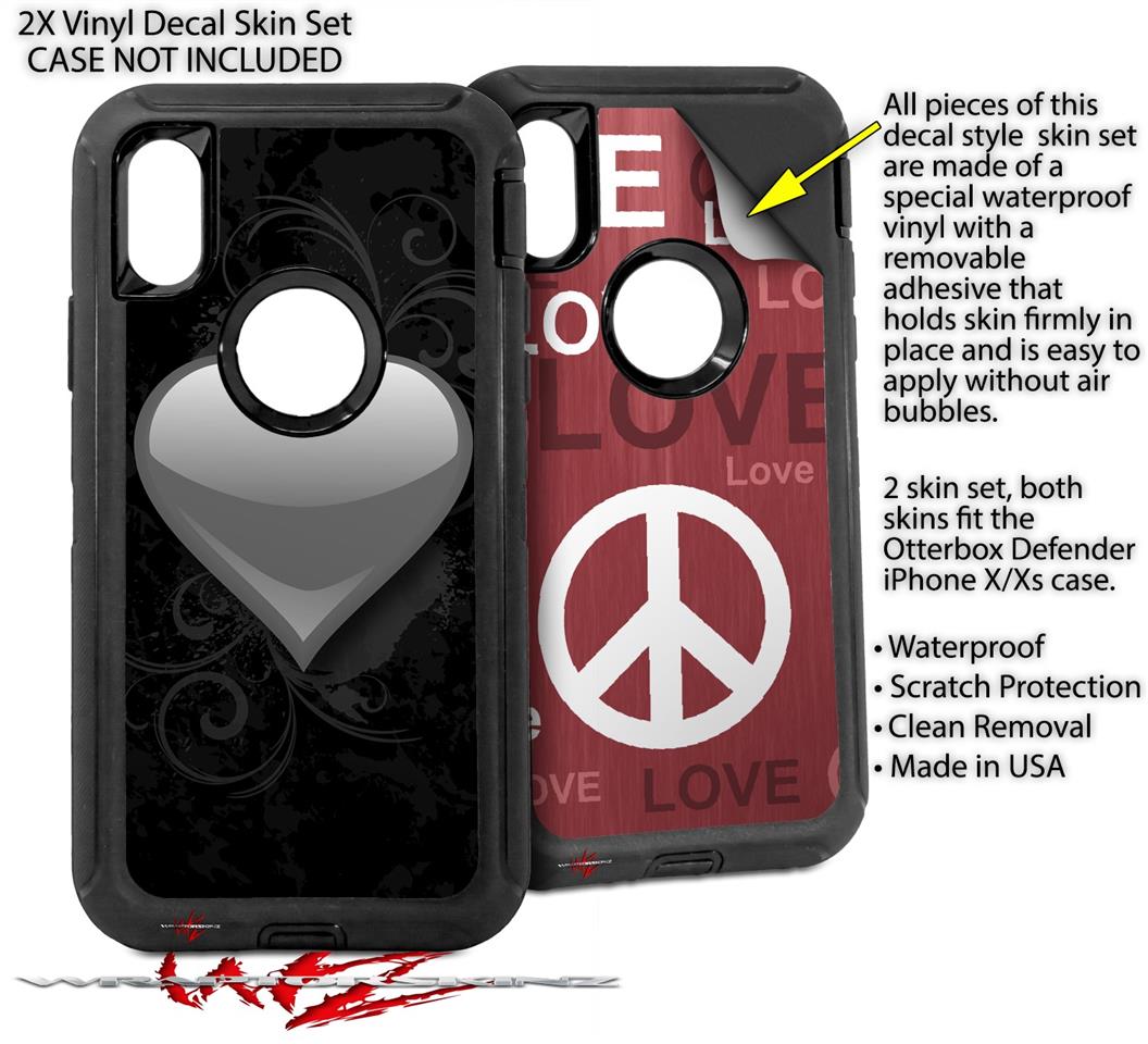2x Decal style Skin Wrap Set compatible with Otterbox Defender iPhone X and Xs Case - Glass Heart Grunge Gray (CASE NOT INCLUDED)