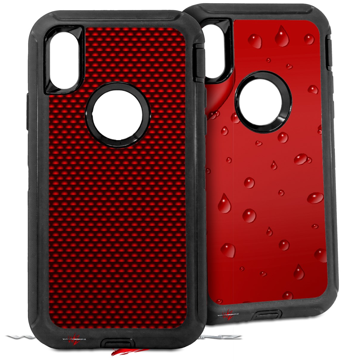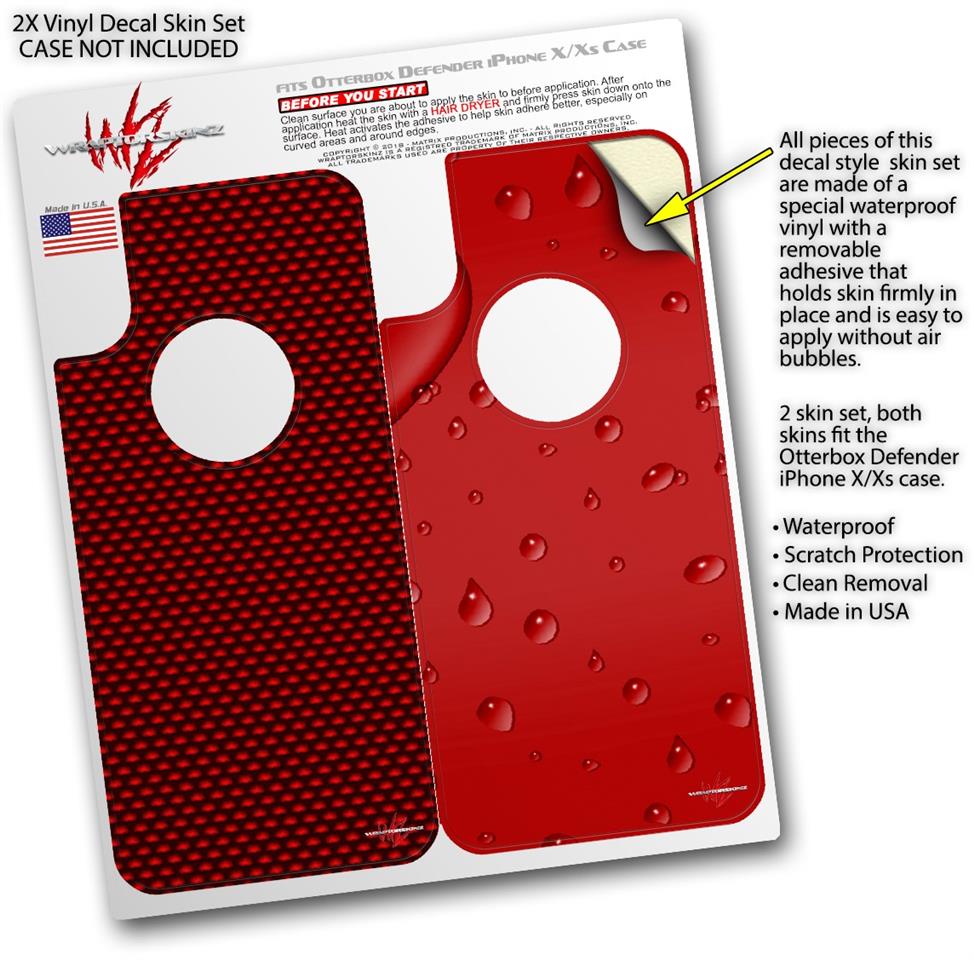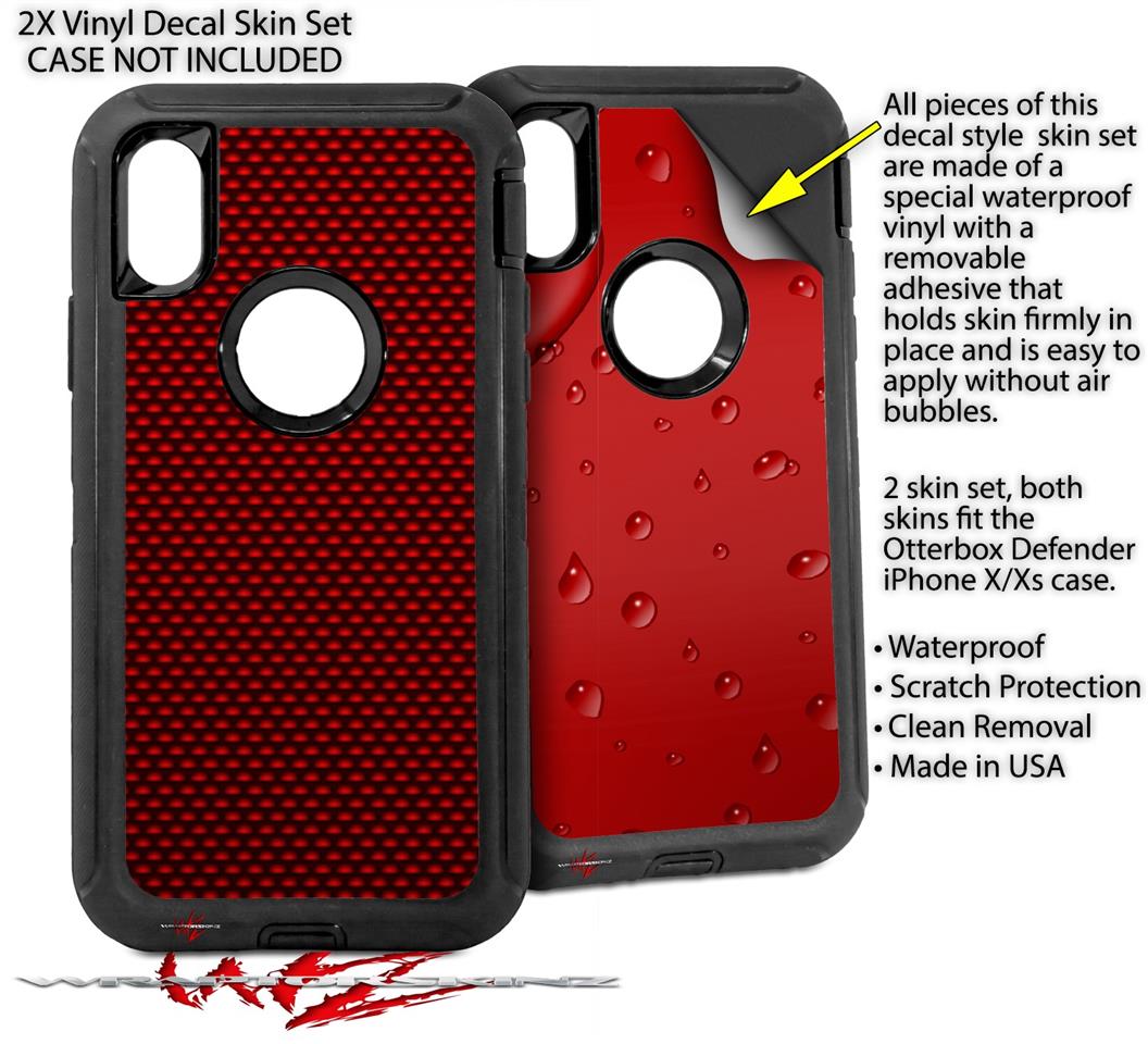 2x Decal style Skin Wrap Set compatible with Otterbox Defender iPhone X and Xs Case - Carbon Fiber Red (CASE NOT INCLUDED)