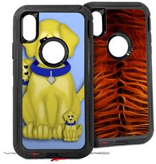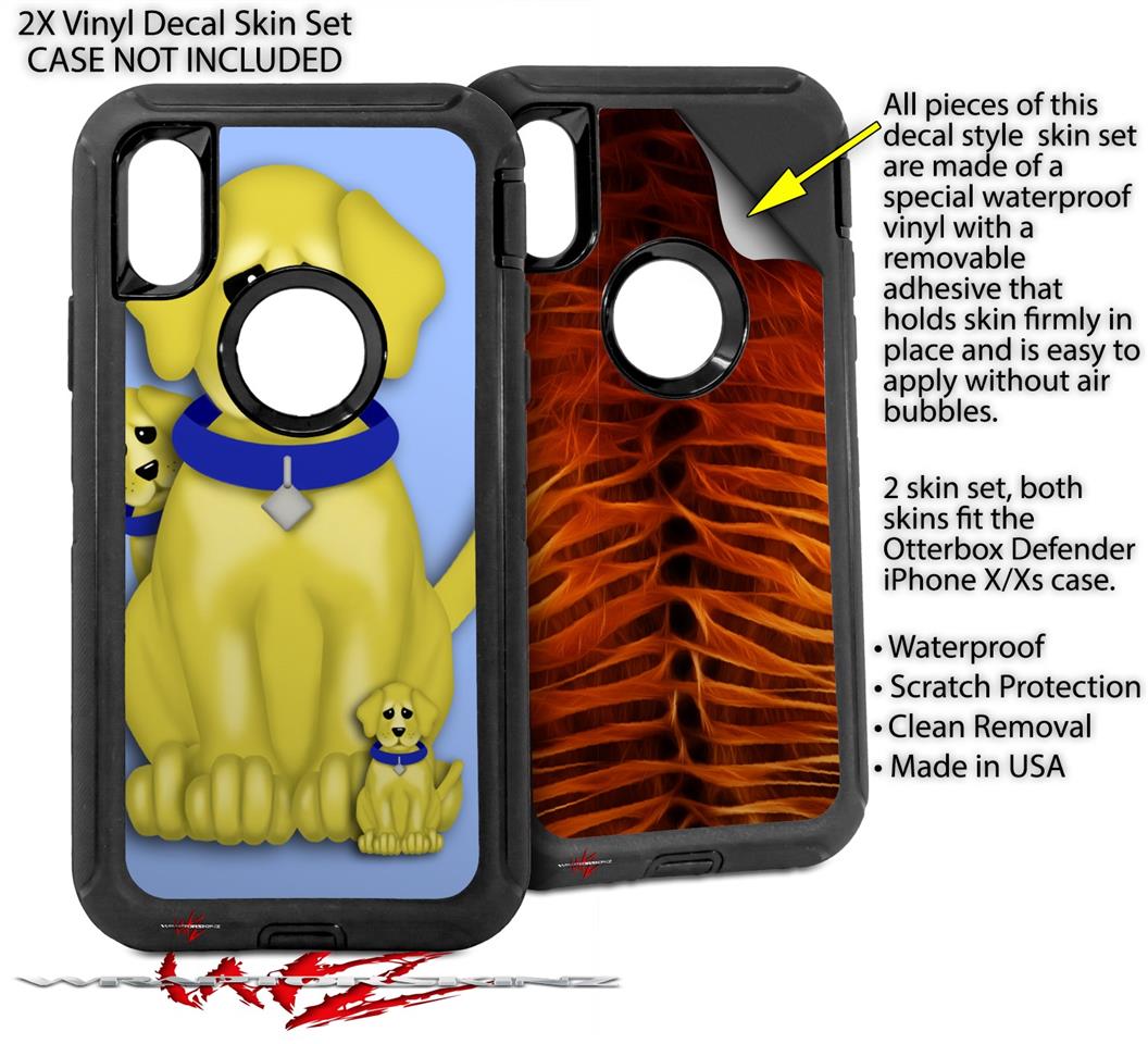 2x Decal style Skin Wrap Set compatible with Otterbox Defender iPhone X and Xs Case - Puppy Dogs on Blue (CASE NOT INCLUDED)