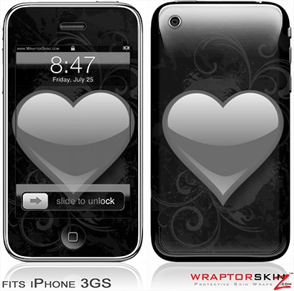 iPhone 3GS Decal Style Skin - Glass Heart Grunge Gray
