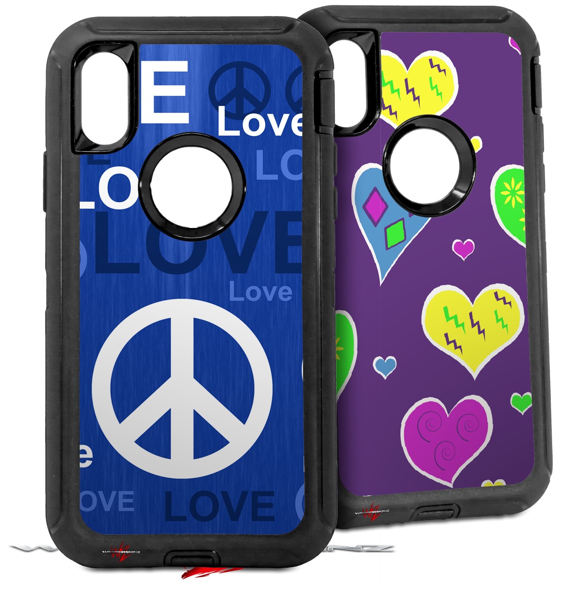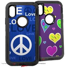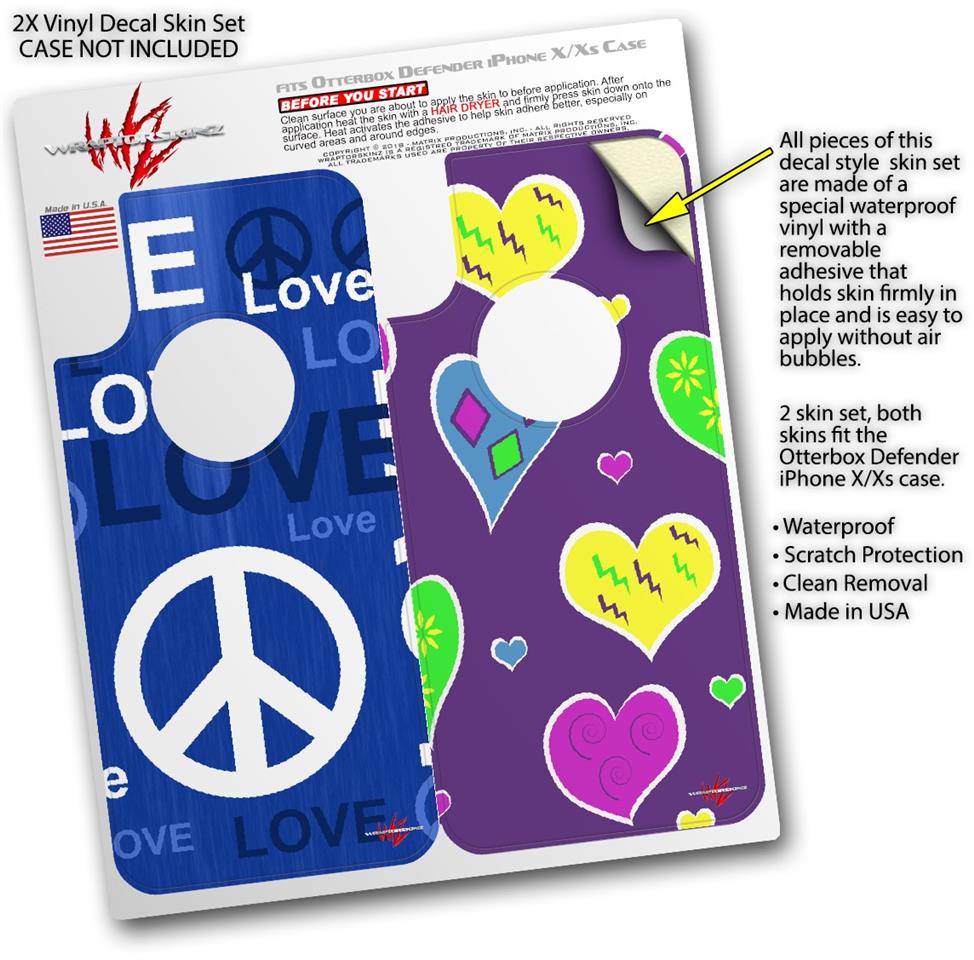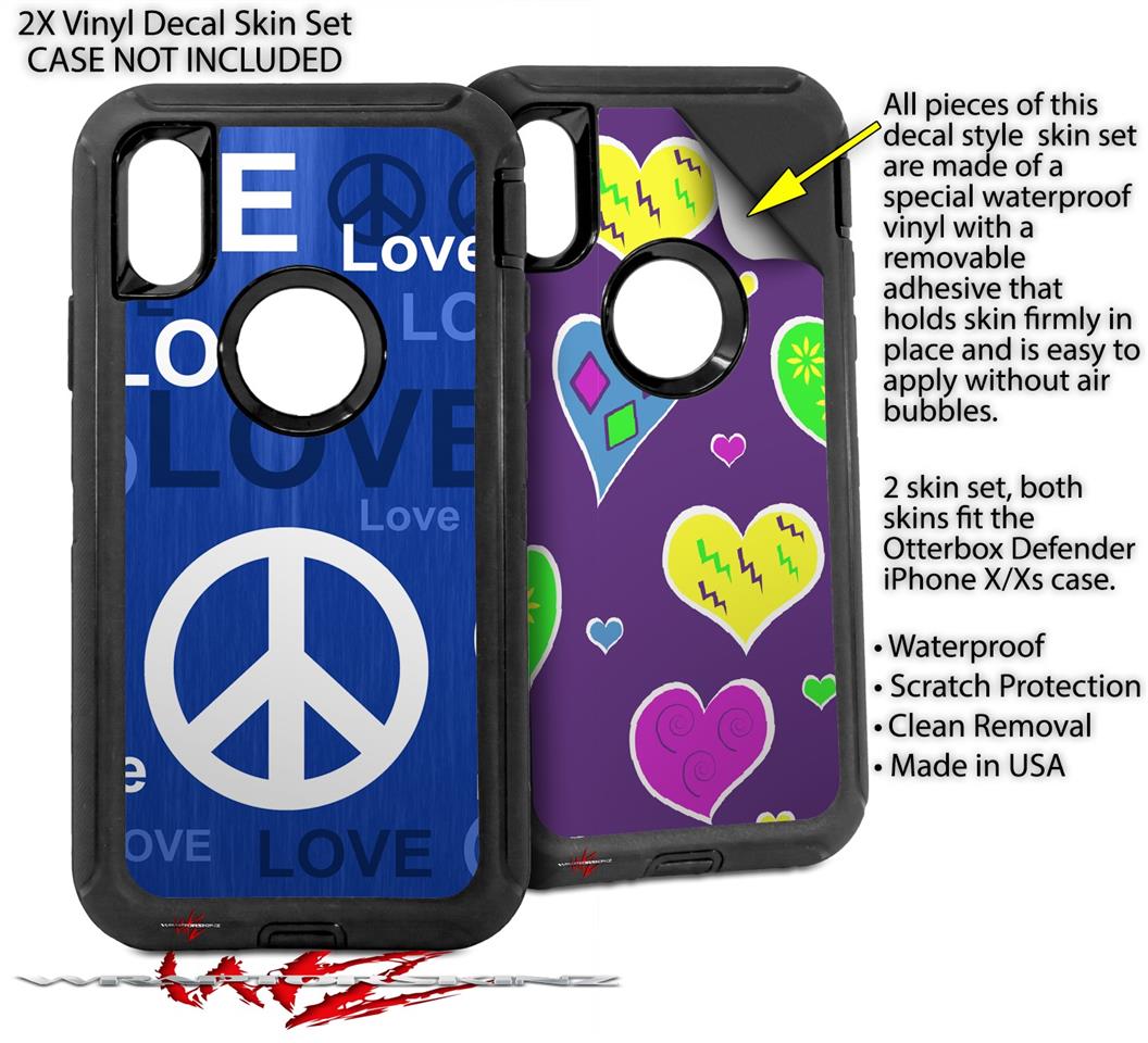 2x Decal style Skin Wrap Set compatible with Otterbox Defender iPhone X and Xs Case - Love and Peace Blue (CASE NOT INCLUDED)