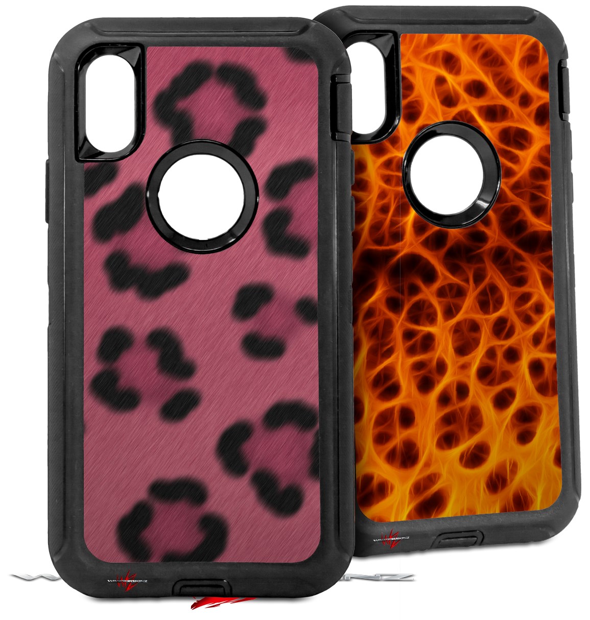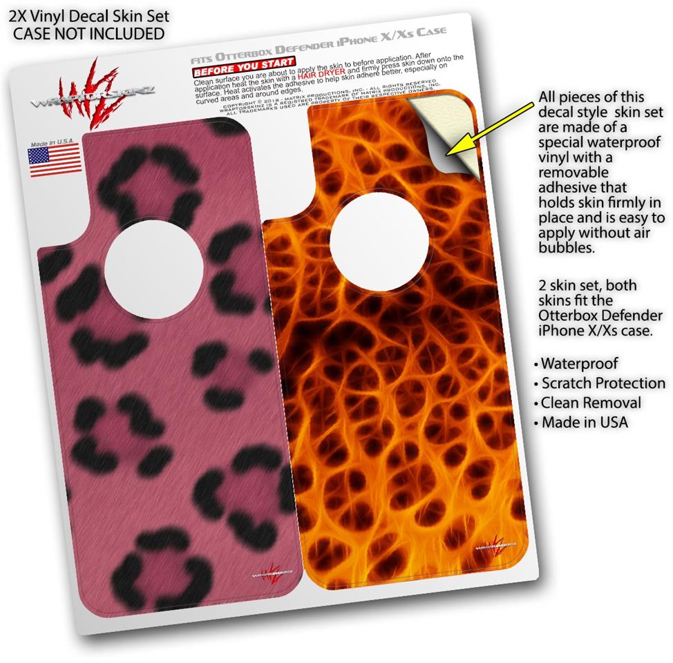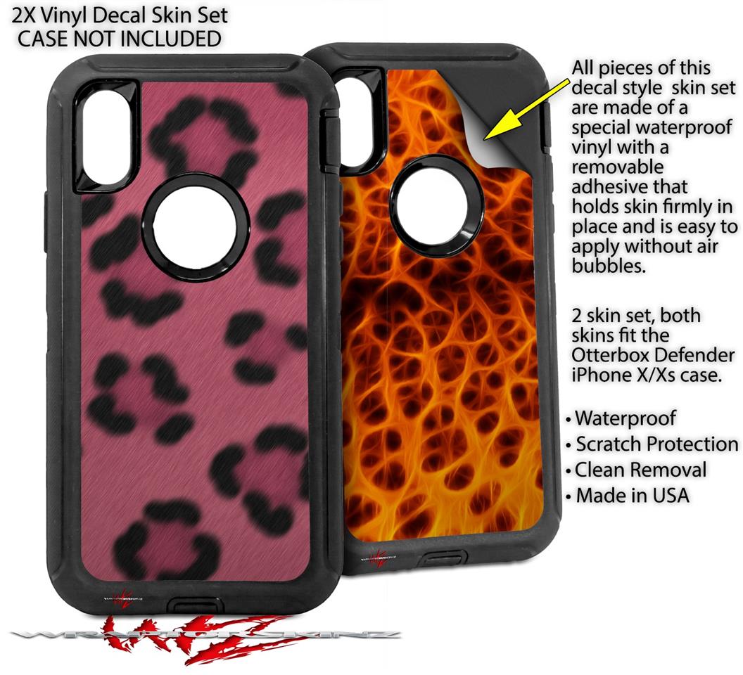 2x Decal style Skin Wrap Set compatible with Otterbox Defender iPhone X and Xs Case - Leopard Skin Pink (CASE NOT INCLUDED)