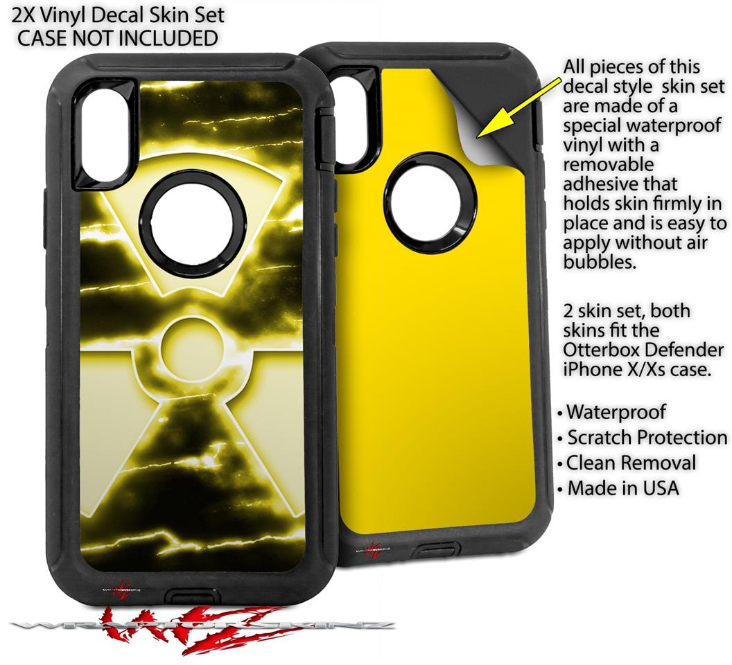 2x Decal style Skin Wrap Set compatible with Otterbox Defender iPhone X and Xs Case - Radioactive Yellow (CASE NOT INCLUDED)