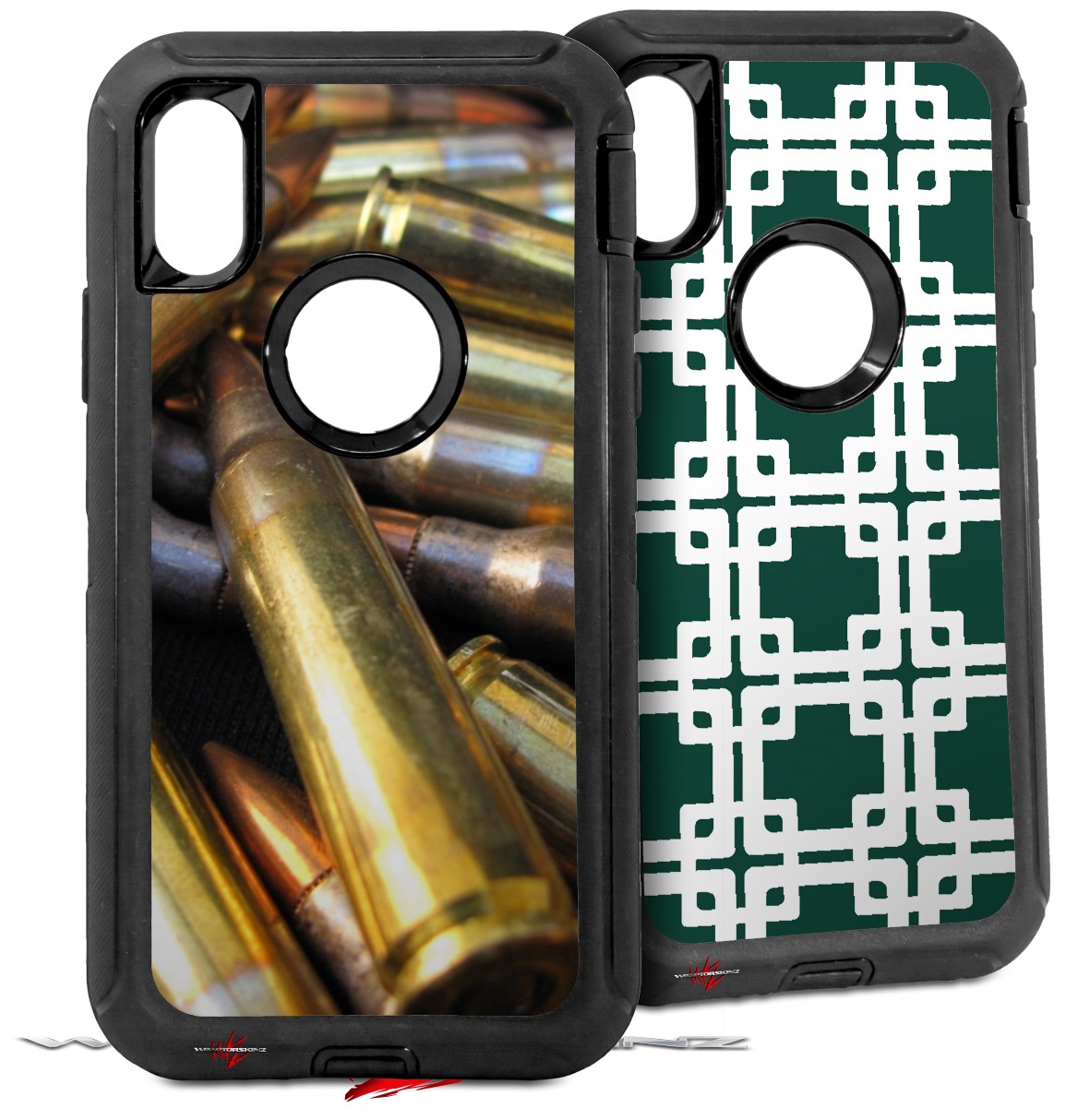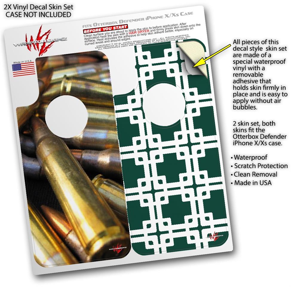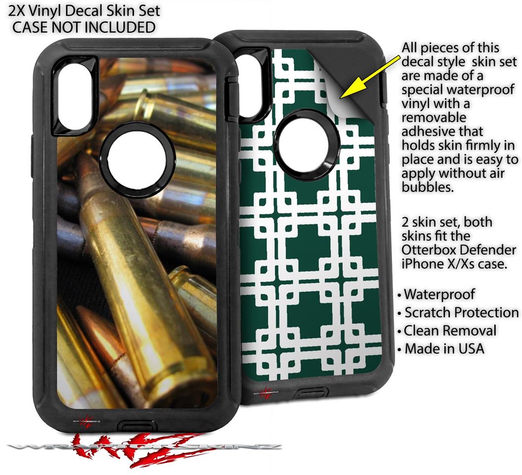 2x Decal style Skin Wrap Set compatible with Otterbox Defender iPhone X and Xs Case - Bullets (CASE NOT INCLUDED)