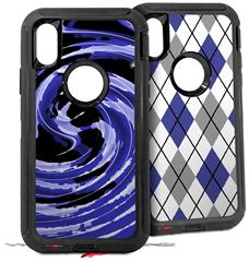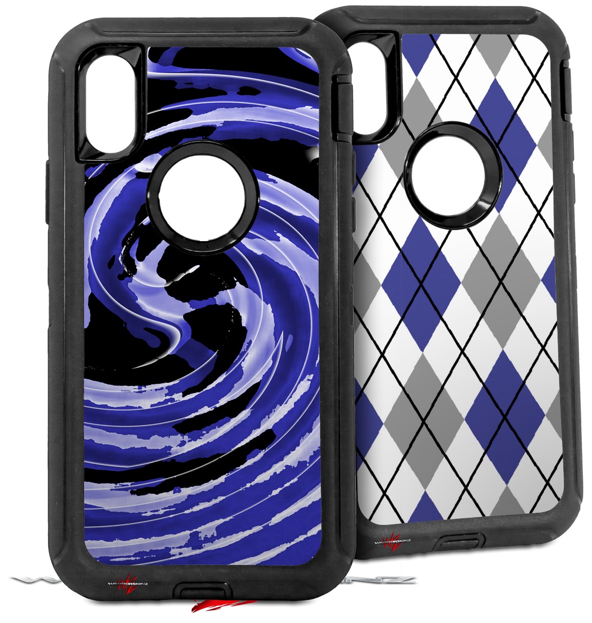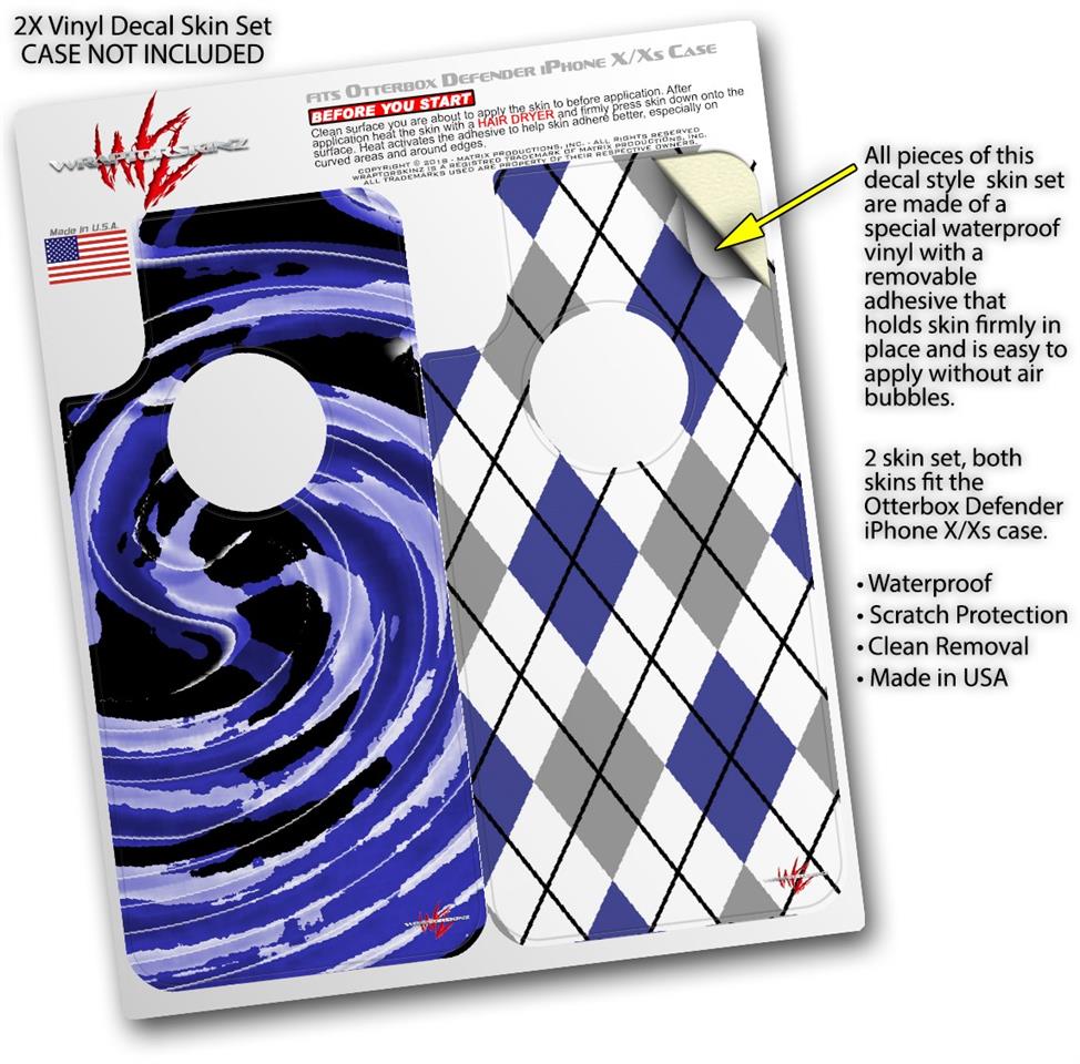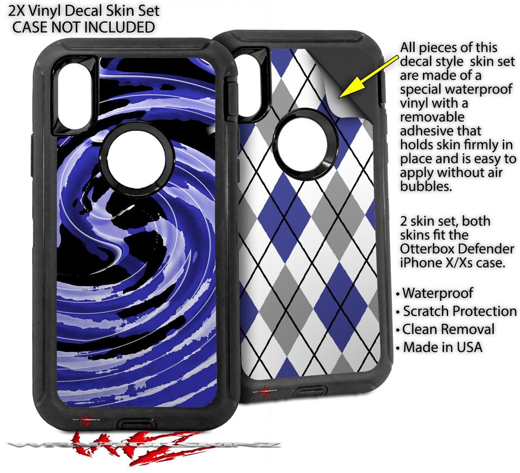 2x Decal style Skin Wrap Set compatible with Otterbox Defender iPhone X and Xs Case - Alecias Swirl 02 Blue (CASE NOT INCLUDED)