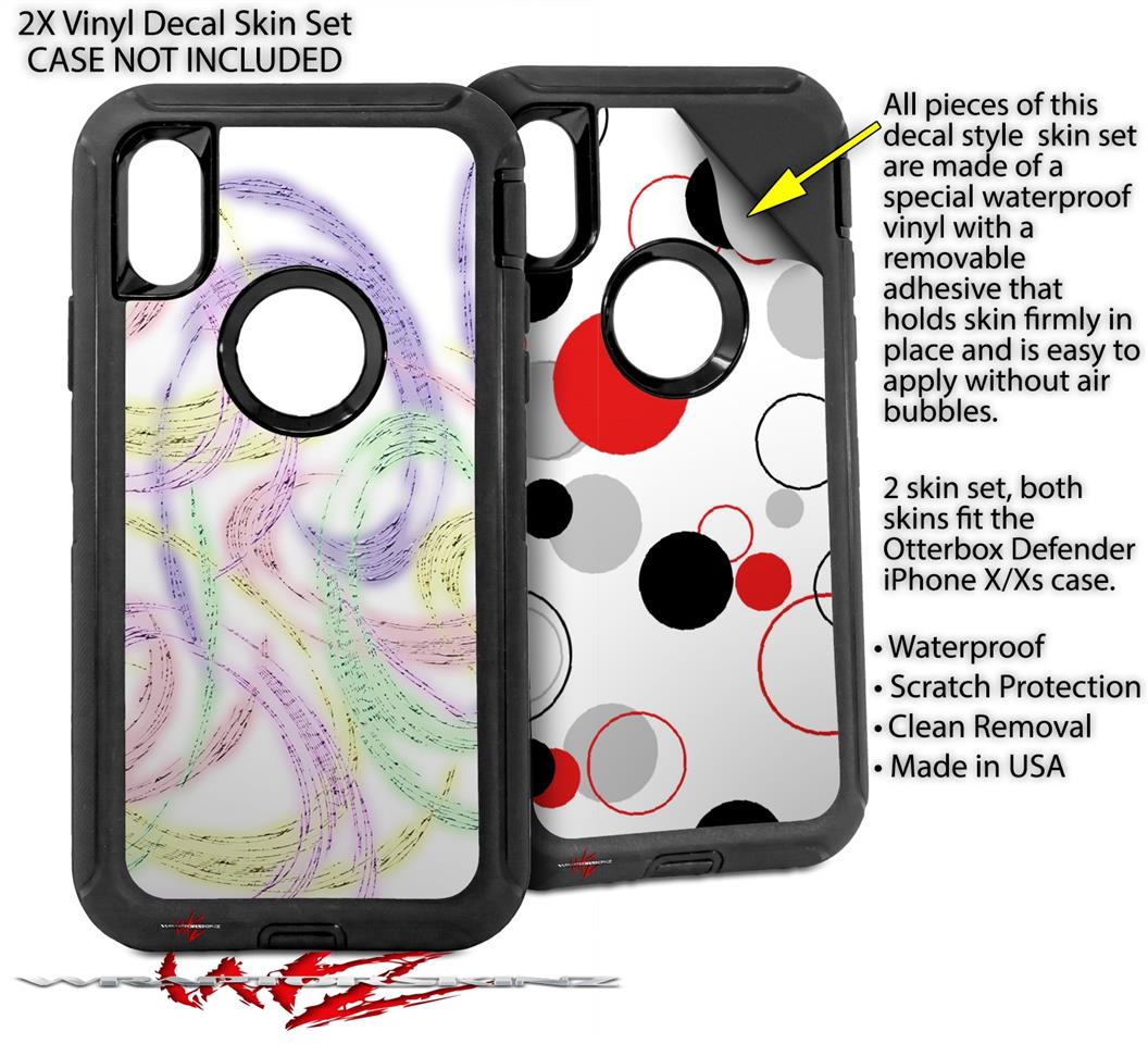 2x Decal style Skin Wrap Set compatible with Otterbox Defender iPhone X and Xs Case - Neon Swoosh on White (CASE NOT INCLUDED)