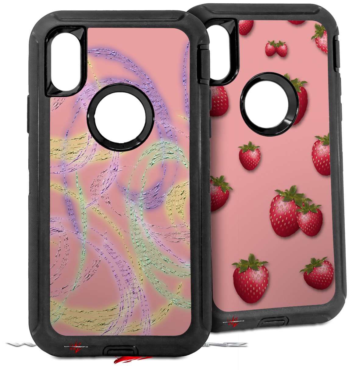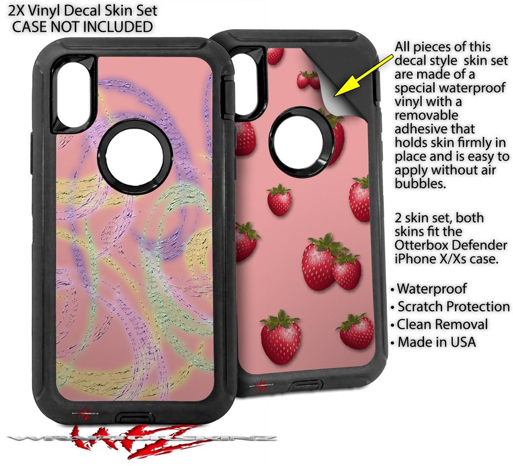 2x Decal style Skin Wrap Set compatible with Otterbox Defender iPhone X and Xs Case - Neon Swoosh on Pink (CASE NOT INCLUDED)