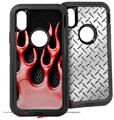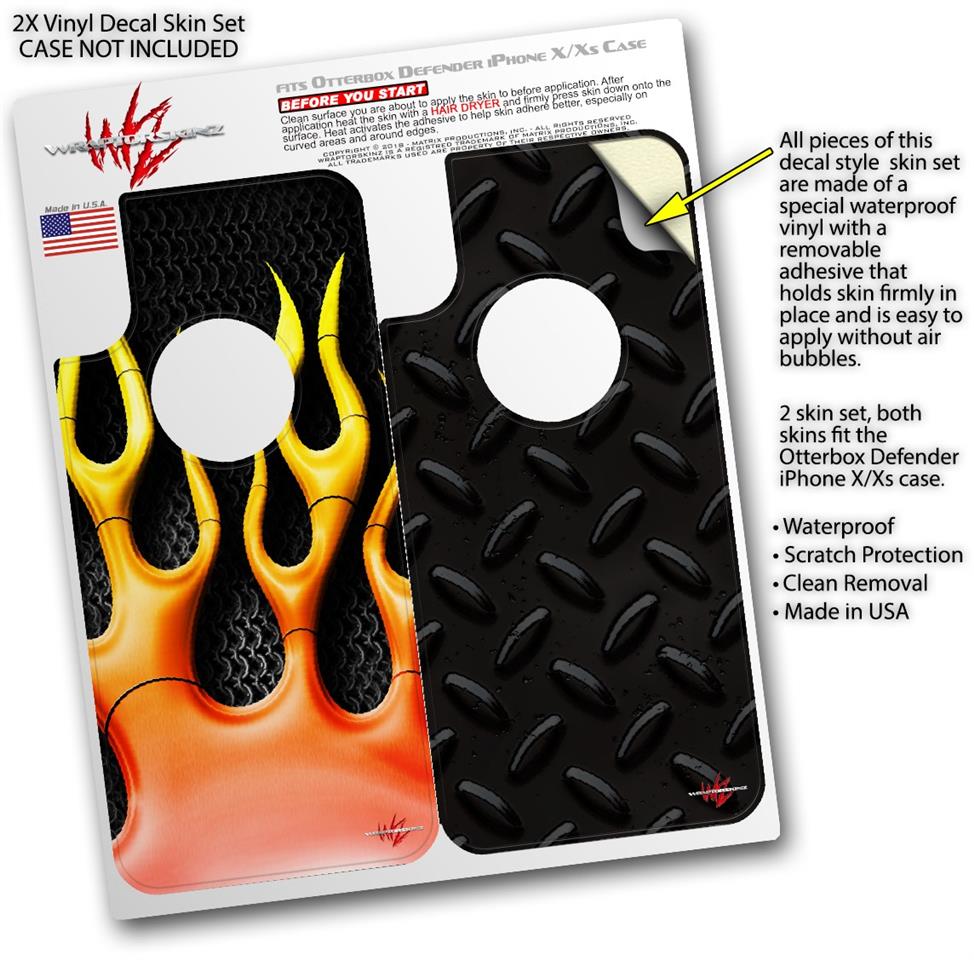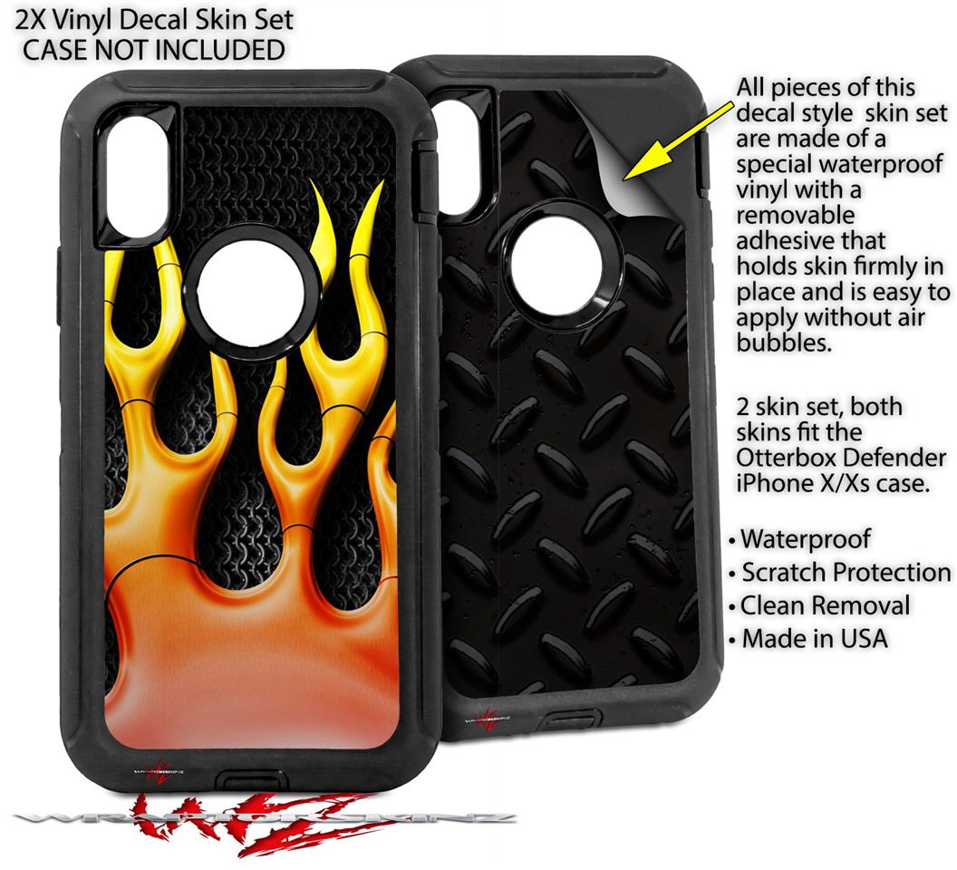 2x Decal style Skin Wrap Set compatible with Otterbox Defender iPhone X and Xs Case - Metal Flames (CASE NOT INCLUDED)