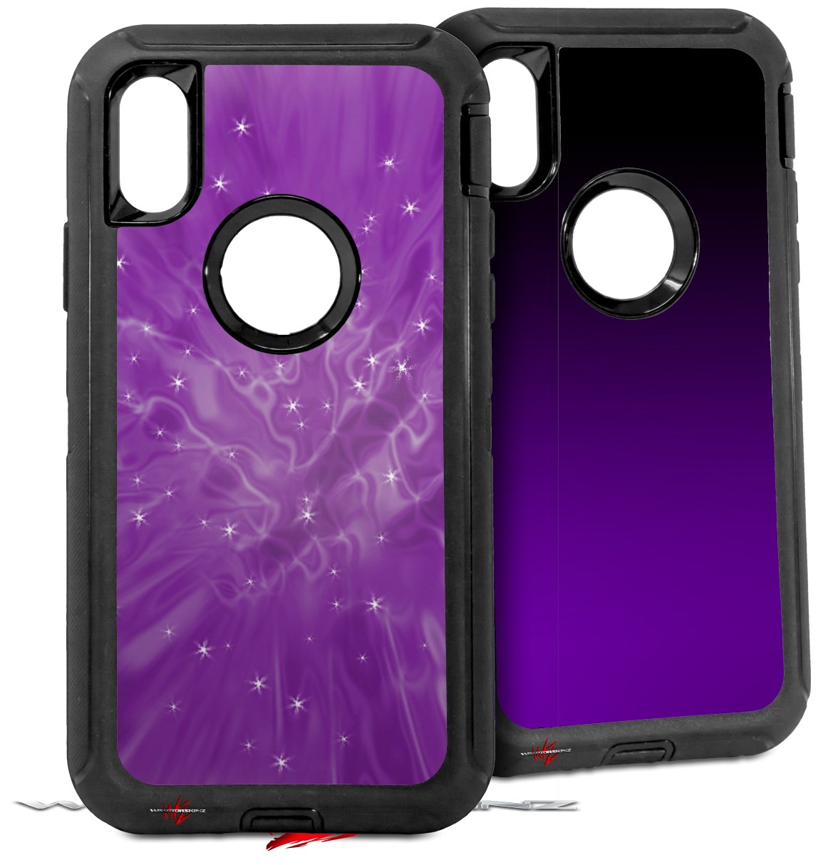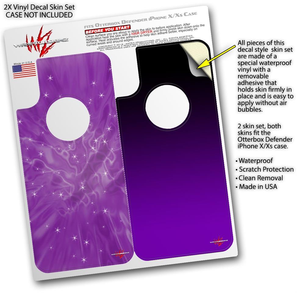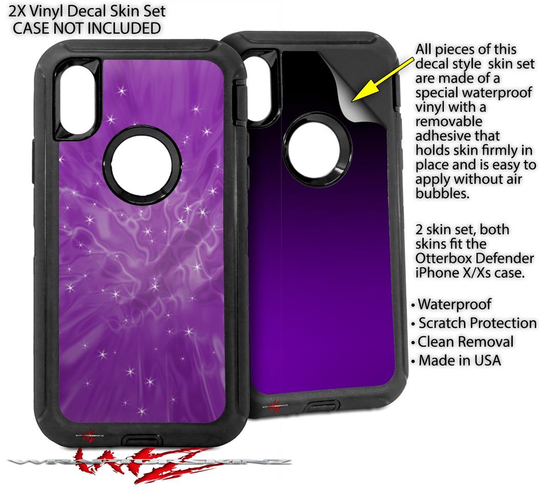 2x Decal style Skin Wrap Set compatible with Otterbox Defender iPhone X and Xs Case - Stardust Purple (CASE NOT INCLUDED)