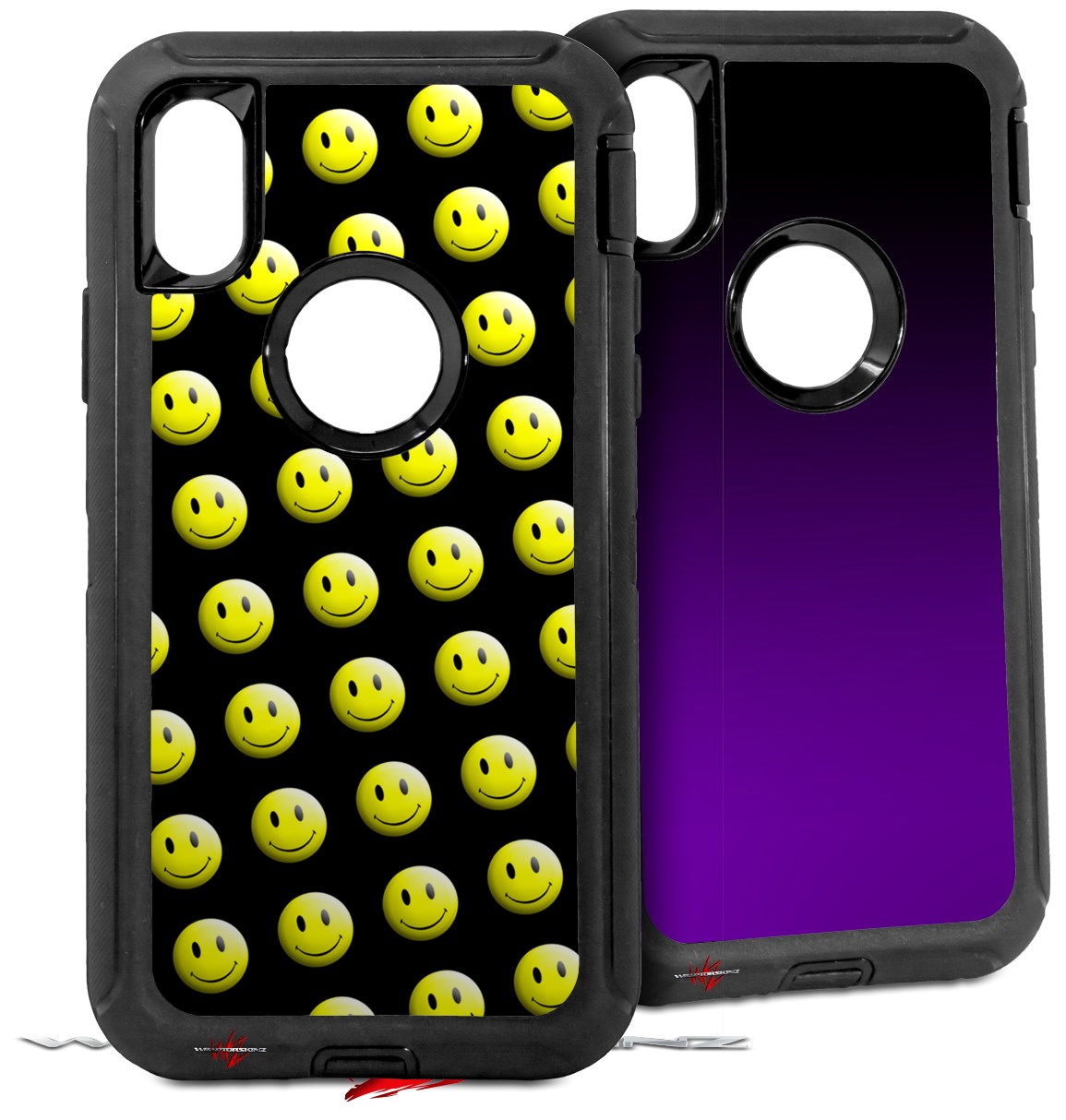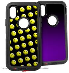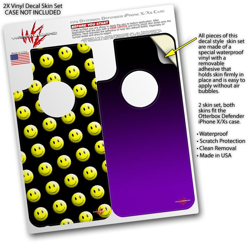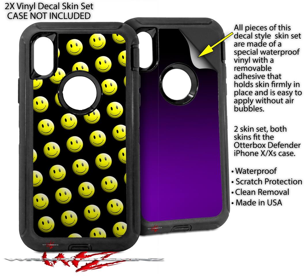 2x Decal style Skin Wrap Set compatible with Otterbox Defender iPhone X and Xs Case - Smileys on Black (CASE NOT INCLUDED)