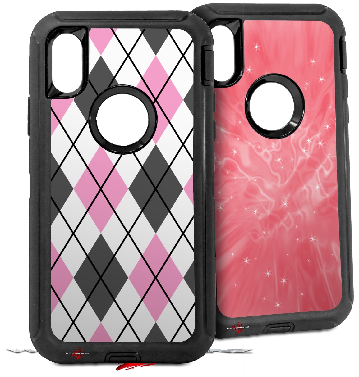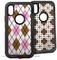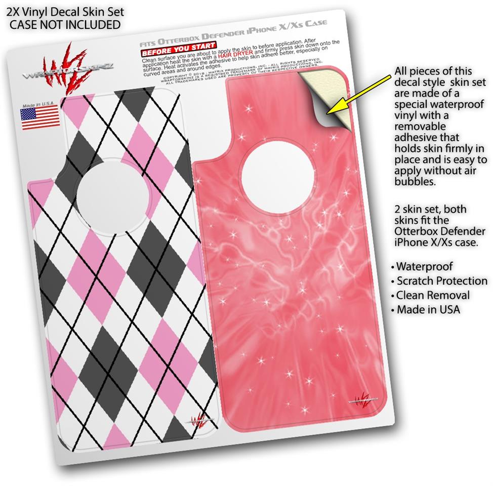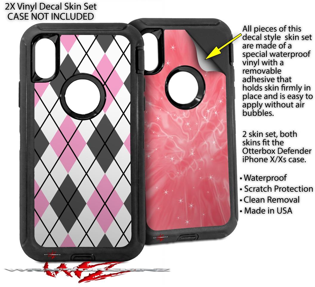 2x Decal style Skin Wrap Set compatible with Otterbox Defender iPhone X and Xs Case - Argyle Pink and Gray (CASE NOT INCLUDED)