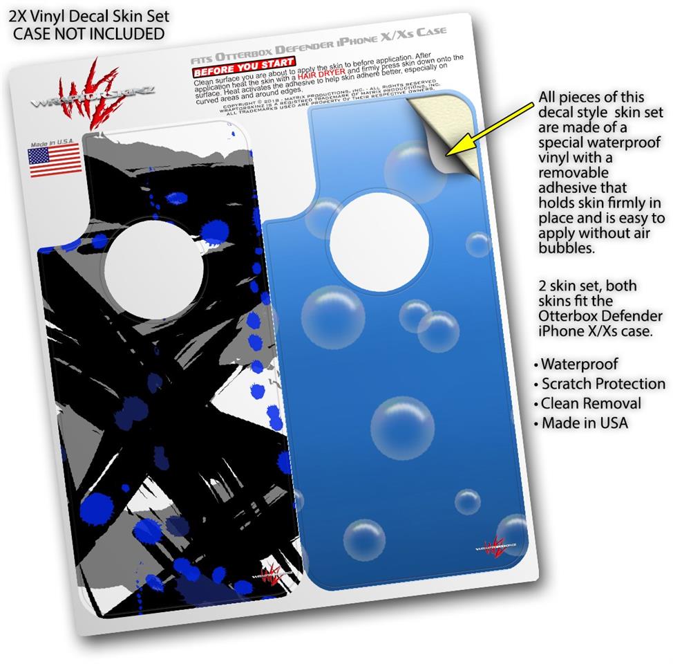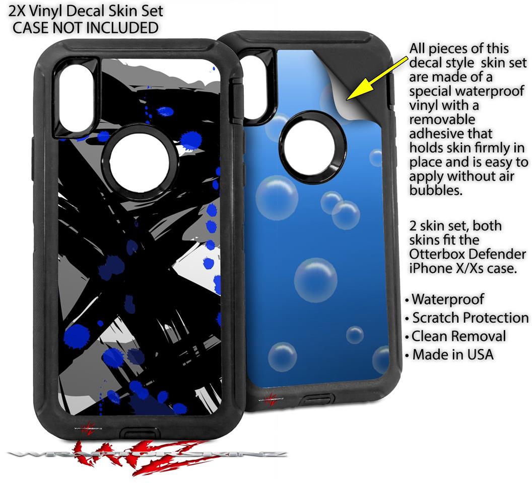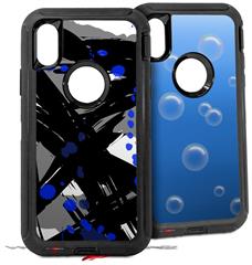 2x Decal style Skin Wrap Set compatible with Otterbox Defender iPhone X and Xs Case - Abstract 02 Blue (CASE NOT INCLUDED)