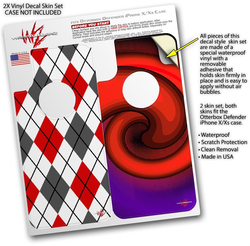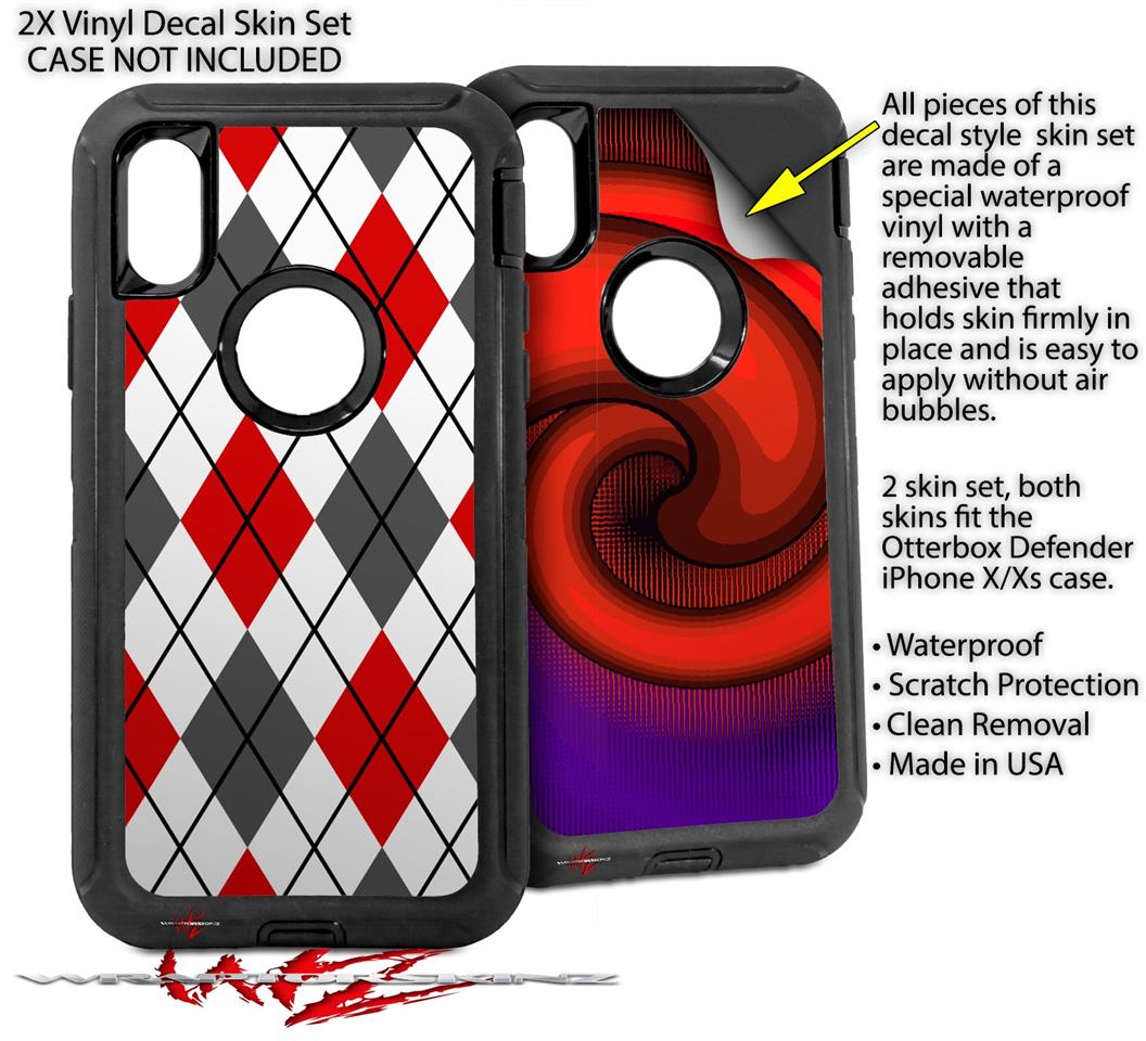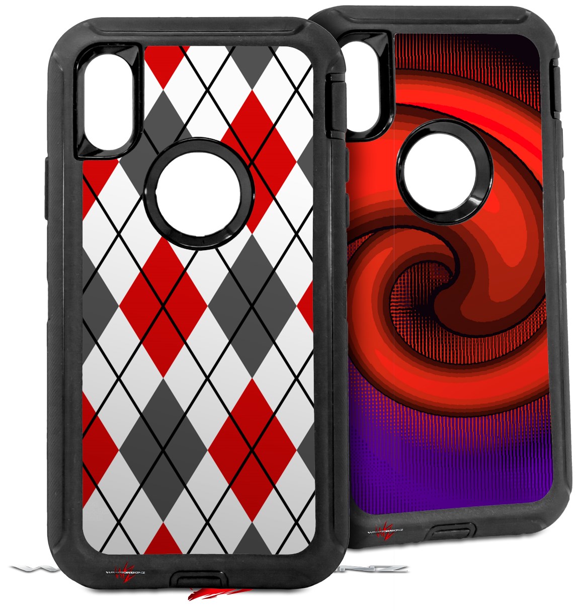2x Decal style Skin Wrap Set compatible with Otterbox Defender iPhone X and Xs Case - Argyle Red and Gray (CASE NOT INCLUDED)