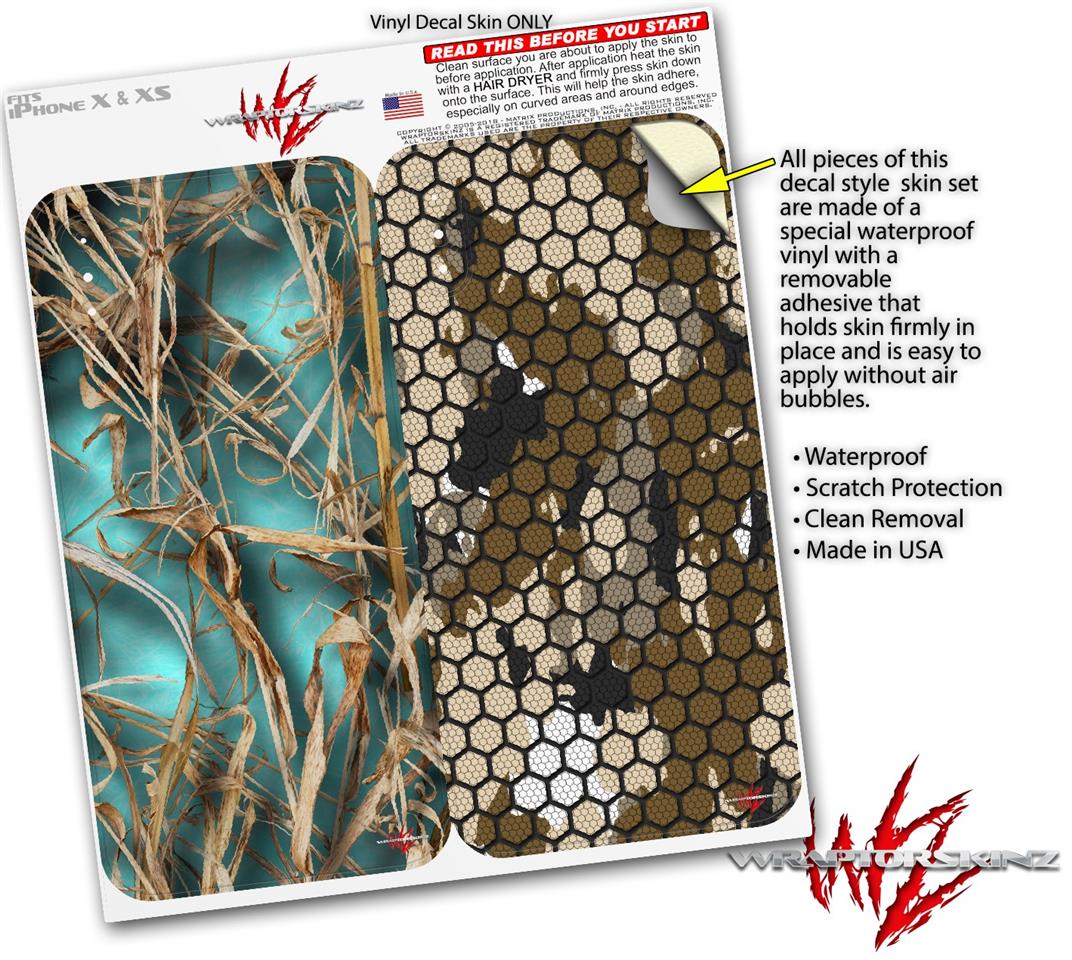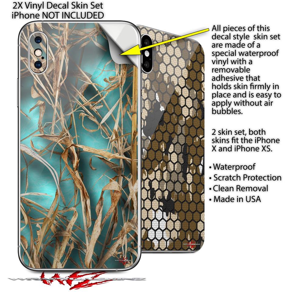 2 Decal style Skin Wraps set compatible with Apple iPhone X and XS WraptorCamo Grassy Marsh Camo Neon Teal