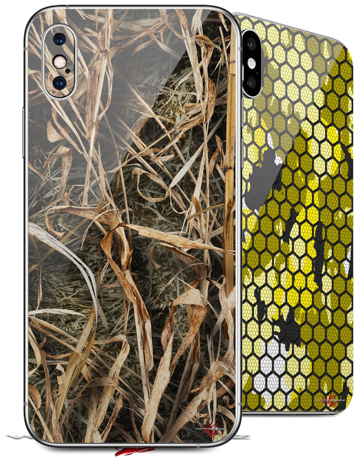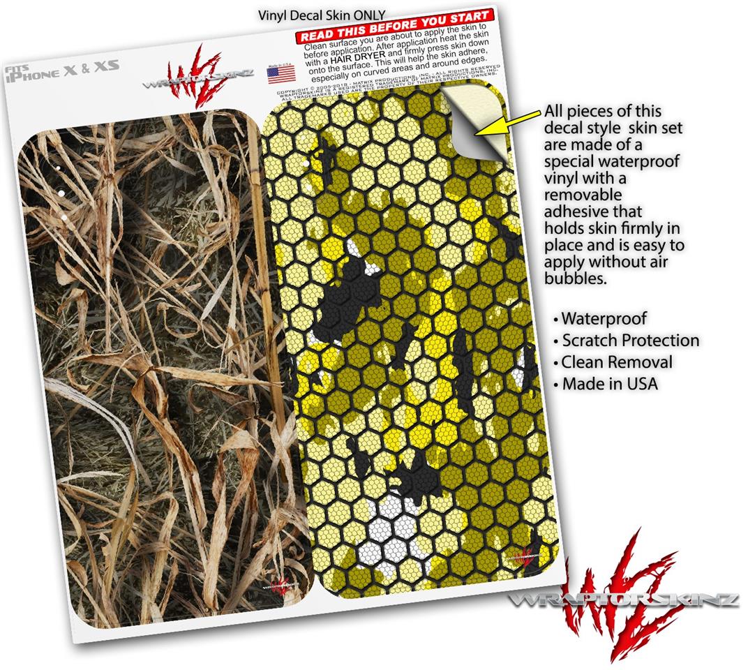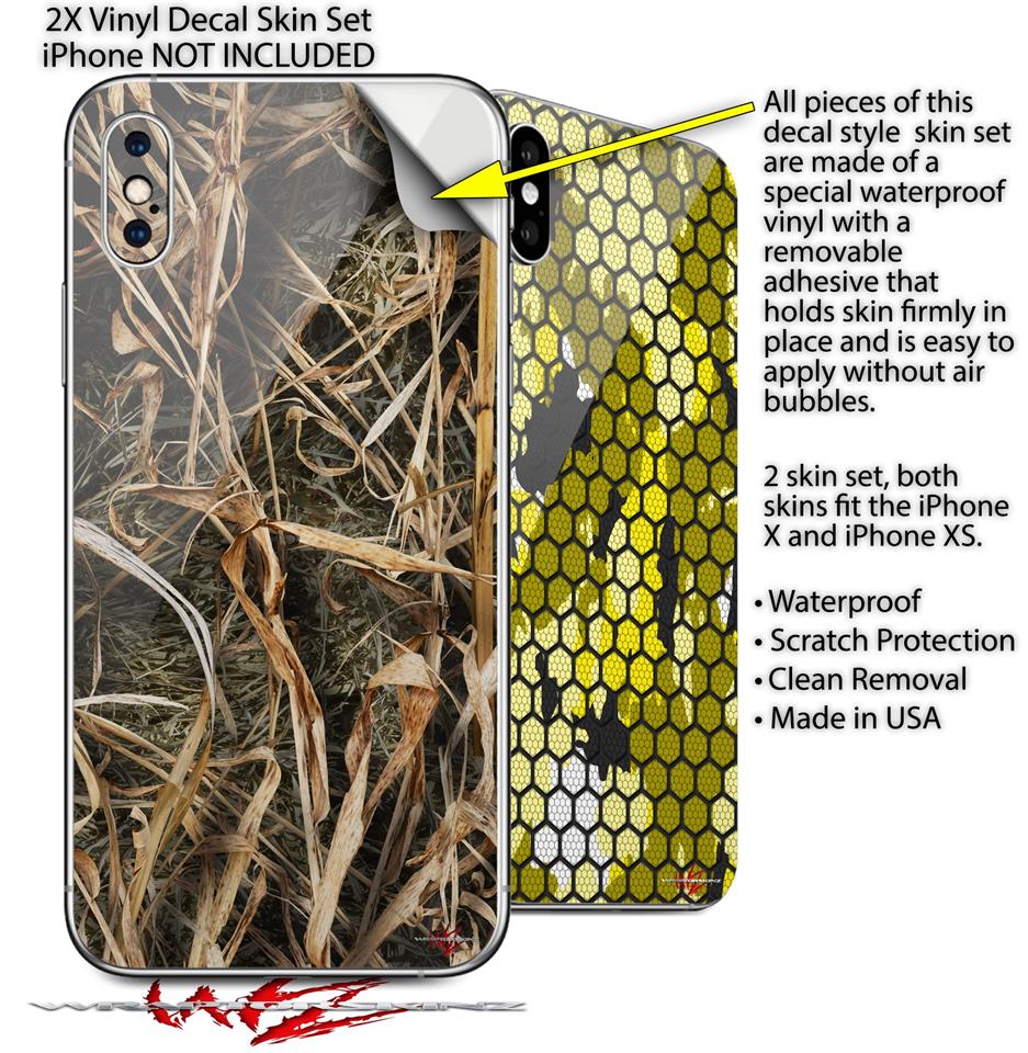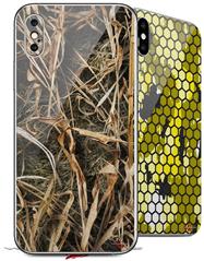 2 Decal style Skin Wraps set compatible with Apple iPhone X and XS WraptorCamo Grassy Marsh Camo