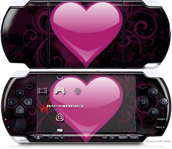 Sony PSP 3000 Decal Style Skin - Glass Heart Grunge Hot Pink