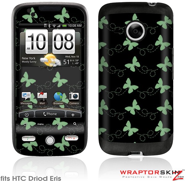 HTC Droid Eris Skin - Pastel Butterflies Green on Black