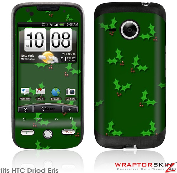 HTC Droid Eris Skin - Christmas Holly Leaves on Green