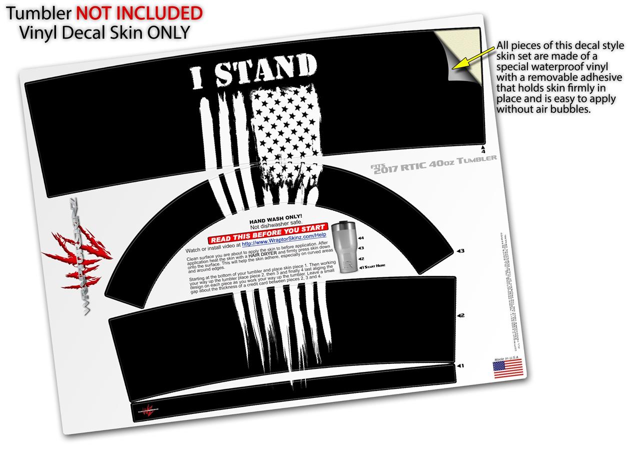 Skin Wrap Decal compatible with 2017 RTIC Tumblers 40oz Brushed USA American Flag I Stand (TUMBLER NOT INCLUDED)