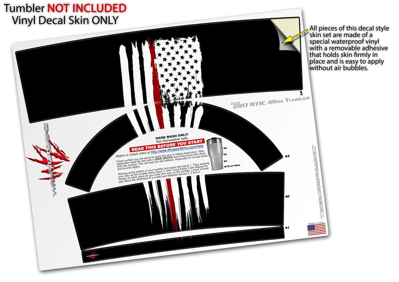 Skin Wrap Decal compatible with 2017 RTIC Tumblers 40oz Brushed USA American Flag Red Line (TUMBLER NOT INCLUDED)